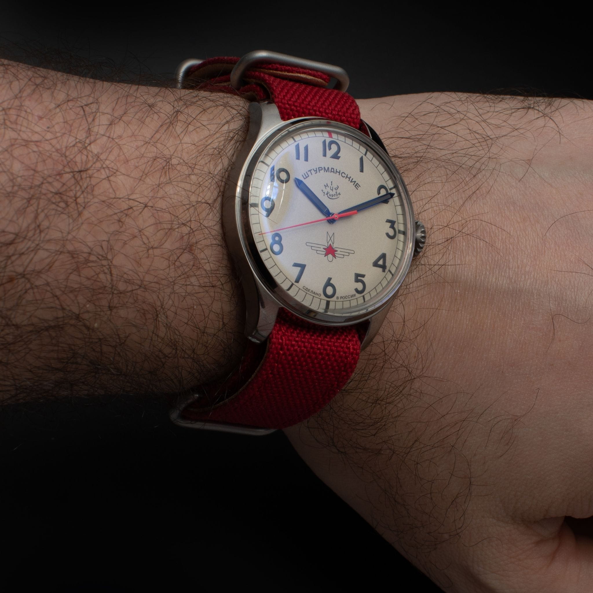 Мужские российские механические часы Штурманские Гагарин Наследие 2609/3787200, механический механизм (автоматический калибр) с высокой точностью. Минеральное стеклоМинеральное стеклоМинеральное стекло представляет собой искусственно выращенный минерал кварца. Такое стекло отличается особой устойчивостью к повреждениям и царапинам. Уступает по некоторым качествам сапфировому стеклу. устойчивое к мелким механическим повреждениям. Класс водозащиты: 30 метров, позволит защитить корпус от случайных брызг или капель дождя. Корпус часов изготовлен из титана. Текстильный ремешок на стандартной застёжке. Стрелки и метки с люминесцентным покрытиемЛюминесцентное покрытиеПозволяет считывать показания времени в темноте. Производители наносят на стрелки, часовые индексы, безель или поверхность циферблата светонакопительный состав, дающий холодное свечение.. Чёткая, читаемая минутная шкала уходит за приделы видимой области циферблата, подчёркивая изящность ободка корпуса. Оцифровка циферблата – отличительная особенность данной модели, её дизайн не изменился с самой первый, гагаринской серии. Заводная головка конической формы с удобной насечкой повторяет дизайн оригинальной модели. Лимитированная серия: 60 шт.