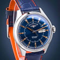 Мужские российские механические часы с минеральным стекломМинеральное стеклоМинеральное стекло представляет собой искусственно выращенный минерал кварца. Такое стекло отличается особой устойчивостью к повреждениям и царапинам. Уступает по некоторым качествам сапфировому стеклу. Штурманские Открытый Космос Day-Date Автомат NH36/1891771, механический механизм (автоматический калибр) с высокой точностью. Лимитированная серия - 3000 экземпляров. Класс водозащиты: 50 метров, позволит защитить корпус от случайных брызг или капель дождя. Корпус часов изготовлен из стали. Кожаный ремешок на стандартной застёжке. Окошки дня недели и даты находятся в положении 3 часа. Сзади украшены изображением астронавта в открытом космосе по мотивам картины Алексея Леонова.