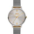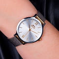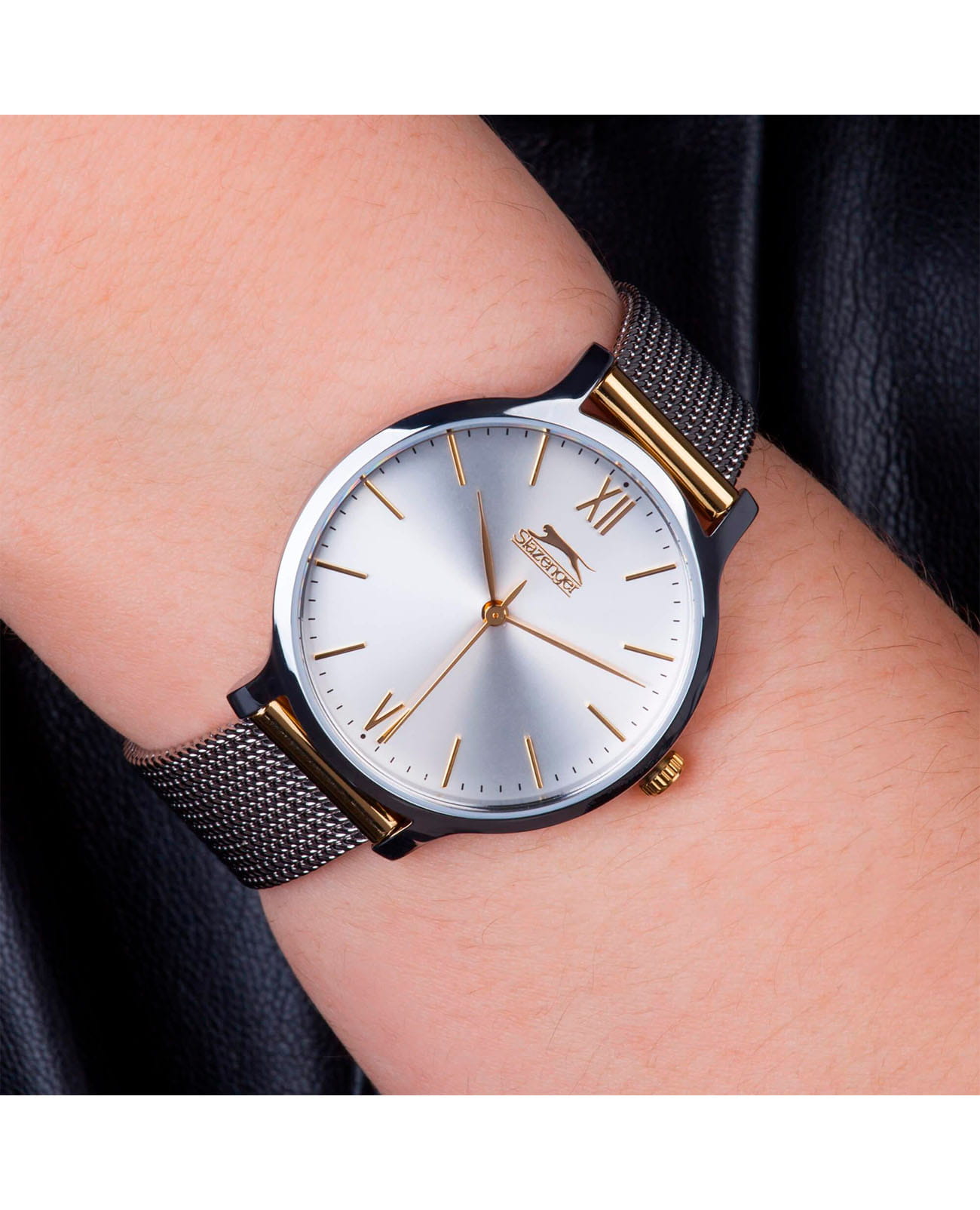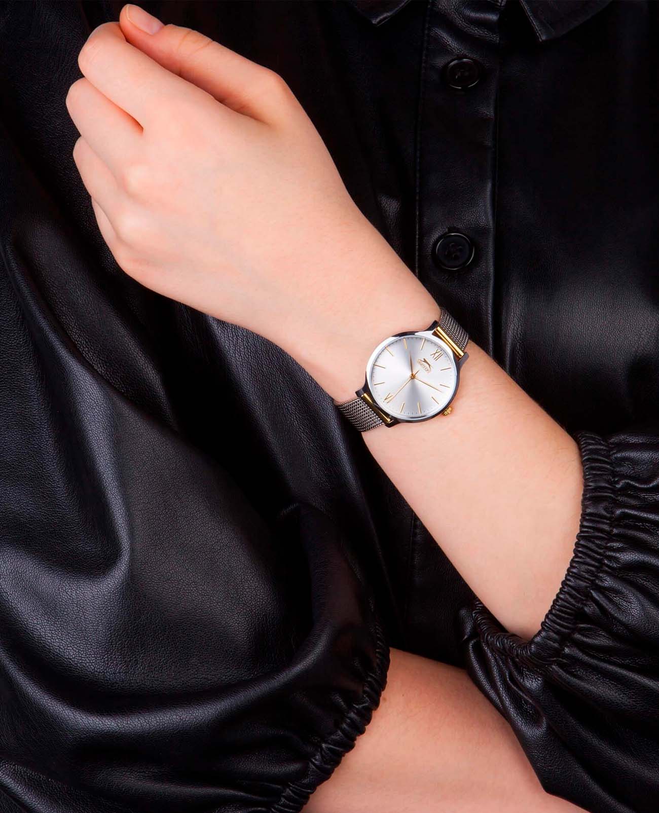Женские наручные часы Slazenger SL.09.1823.2.03 из коллекции Essentials сочетают в себе элегантный дизайн и практичность современных технологий. Модель обладает круглым корпусом диаметром 34 мм, изготовленным из суперметалла с IP-покрытиемIP-покрытиеМетод ионного напыления. Демонстрирует повышенную устойчивость к истиранию, окислению и химическим веществам. Под воздействием высокого давления и температуры около 1500°C молекулы металла надёжно соединяются с частицами корпуса часов., что обеспечивает высокую устойчивость к внешним воздействиям. Браслет выполнен в виде миланского плетения серебряного цвета с раскладной застежкойРаскладной замокДанный вариант застежки используется только на часах с металлическим браслетом. Отличительная особенность такого крепления в том, что длина браслета становится универсальной и вы можете самостоятельно отрегулировать нужный вам размер – застежка просто двигается по браслету часов., гарантирующей комфортное ношение и безопасность. Серебристый циферблат делает модель особенно женственной и привлекательной. Для защиты используется минеральное стеклоМинеральное стеклоМинеральное стекло представляет собой искусственно выращенный минерал кварца. Такое стекло отличается особой устойчивостью к повреждениям и царапинам. Уступает по некоторым качествам сапфировому стеклу., обеспечивающее прочную защиту от царапин. Часы работают на кварцевом механизме, что гарантирует точное время без необходимости подзаводки. Водонепроницаемость часов составляет 3 атмосферы (30 метров), что позволяет использовать их в повседневной жизни, но не рекомендуется для плавания или водных видов спорта.