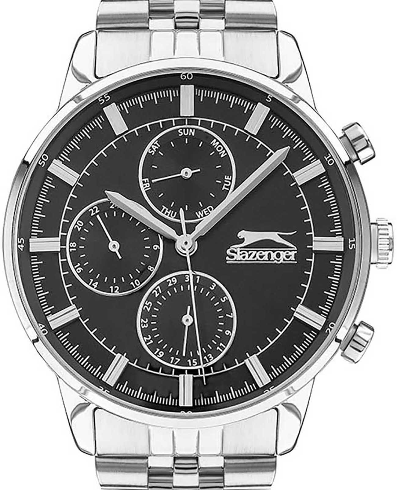 Slazenger SL.09.2036.2.02 — стильные мужские часы, сочетающие элегантный дизайн и функциональность. Корпус выполнен из суперметалла, придающей модели прочность и долговечность. Минеральное стеклоМинеральное стеклоМинеральное стекло представляет собой искусственно выращенный минерал кварца. Такое стекло отличается особой устойчивостью к повреждениям и царапинам. Уступает по некоторым качествам сапфировому стеклу. защищает циферблат от царапин и гарантирует превосходную читаемость. Циферблат с дополнительными индикаторами подчёркивает современный стиль. Браслет из суперметалла обеспечивает комфортное ношение и надёжную фиксацию на запястье. Функциональность дополняется индикацией даты, дня недели и 24-часовым форматом времени, повышая удобство использования. Водонепроницаемость 50 метров делает модель устойчивой к случайным брызгам и влаге, идеально подходя для повседневного ношения.
