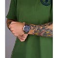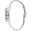 Часы работают на кварцевом механизме, что гарантирует точное время без необходимости подзаводки. Модель также оснащена функциями отображения второго часового пояса, дня недели и текущего времени в 24-часовом формате, делая её практичной для повседневного использования и путешествий.