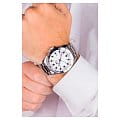 Мужские наручные часы Slazenger SL.09.2114.2.01 сочетают в себе классический дизайн и надежность современных технологий. Модель обладает круглым корпусом диаметром 44 мм, изготовленным из нержавеющей стали, что обеспечивает высокую устойчивость к внешним воздействиям. Браслет выполнен из металла с раскладной застежкойРаскладной замокДанный вариант застежки используется только на часах с металлическим браслетом. Отличительная особенность такого крепления в том, что длина браслета становится универсальной и вы можете самостоятельно отрегулировать нужный вам размер – застежка просто двигается по браслету часов., гарантирующей комфортное ношение и безопасность. Циферблат серебристого цвета декорирован стрелками с люминесцентным покрытиемЛюминесцентное покрытиеПозволяет считывать показания времени в темноте. Производители наносят на стрелки, часовые индексы, безель или поверхность циферблата светонакопительный состав, дающий холодное свечение., которые обеспечивают читаемость времени даже в условиях недостаточной освещенности. Для защиты используется минеральное стеклоМинеральное стеклоМинеральное стекло представляет собой искусственно выращенный минерал кварца. Такое стекло отличается особой устойчивостью к повреждениям и царапинам. Уступает по некоторым качествам сапфировому стеклу., обеспечивающее прочную защиту от царапин. Вращающийся стальной безельБезельВнешний ободок, закрепляющий стекло. В спортивных часах так называется поворотное кольцо с делениями на циферблате, выполняет роль таймера – замеряет отрезки времени на шкале. Неподвижный безель – элемент декора. Однонаправленно вращающийся безель на дайверских часах позволяет фиксировать моменты погружения и выныривания на поверхность.. Часы работают на кварцевом механизме, что гарантирует точное время без необходимости подзаводки. Водонепроницаемость часов достигает 5 атмосфер (WR50), что позволяет использовать их во время плавания, однако они не предназначены для дайвинга или других водных видов спорта. Толщина модели составляет 12 мм.
