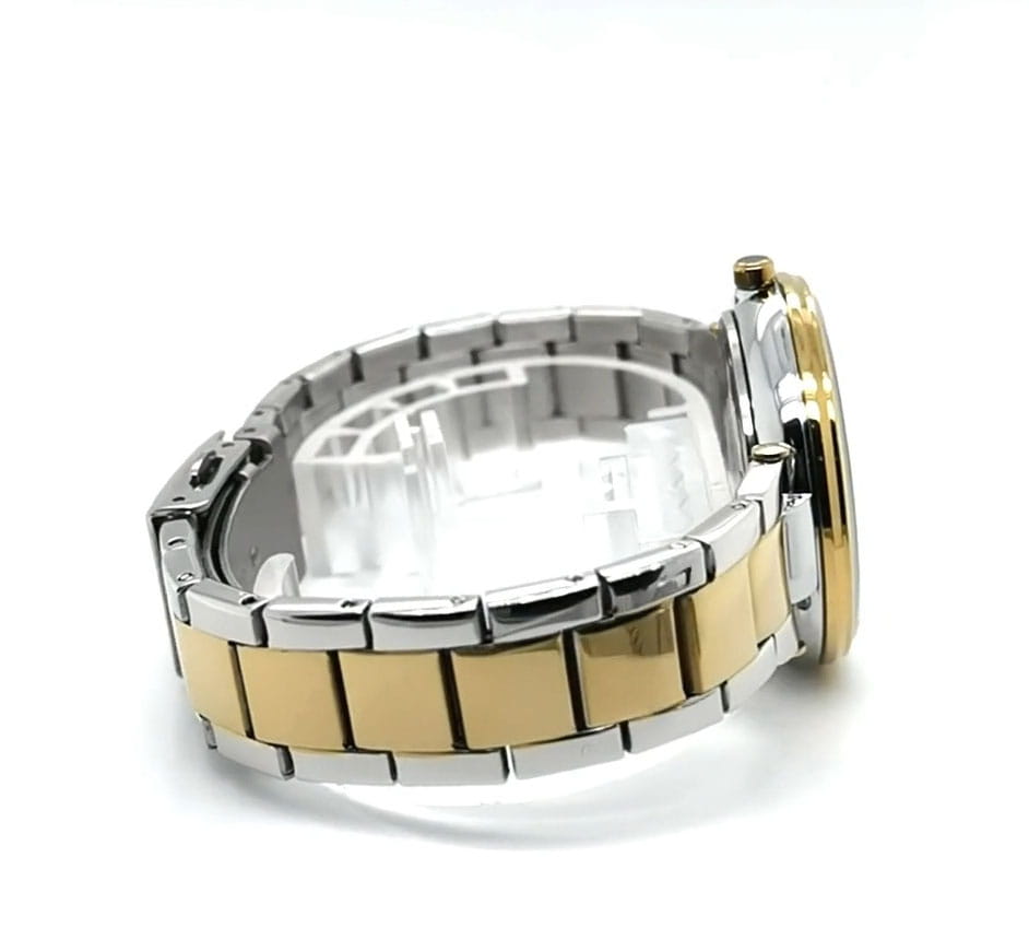 Slazenger SL.09.2122.3.06 — это элегантные женские наручные часы. Они имеют круглый циферблат с диаметром 34 мм, выполненный в золотистом цвете. Корпус часов, толщиной 9 мм, изготовлен из суперметалла с IP-покрытиемIP-покрытиеМетод ионного напыления. Демонстрирует повышенную устойчивость к истиранию, окислению и химическим веществам. Под воздействием высокого давления и температуры около 1500°C молекулы металла надёжно соединяются с частицами корпуса часов., что обеспечивает долговечность и устойчивость к коррозии. Браслет также выполнен из суперметалла с IP-покрытиемIP-покрытиеМетод ионного напыления. Демонстрирует повышенную устойчивость к истиранию, окислению и химическим веществам. Под воздействием высокого давления и температуры около 1500°C молекулы металла надёжно соединяются с частицами корпуса часов., придавая часам стильный и современный вид. Размер браслета (H1-H2): 16-14 мм. Часы оснащены кварцевым механизмом, который гарантирует точность хода. Циферблат защищен минеральным стекломМинеральное стеклоМинеральное стекло представляет собой искусственно выращенный минерал кварца. Такое стекло отличается особой устойчивостью к повреждениям и царапинам. Уступает по некоторым качествам сапфировому стеклу., устойчивым к царапинам. Модель водонепроницаема до 30 метров, что позволяет носить ее во время дождя или мытья рук. Браслет оснащен раскладной застёжкойРаскладная застёжкаТакой тип застёжки используется только на браслетах из металла. Она никогда не раскрывается полностью, происходит разделение на 2 и более частей. Раскладывающая застёжка снизит вероятность потери часов к минимуму. для удобства использования. Эти часы сочетают в себе функциональность и стильный дизайн, делая их отличным аксессуаром для повседневного использования и особых случаев.