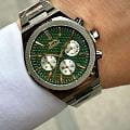 Часы Slazenger SL.09.2137.2.05 воплощают в себе элегантность и практичность, идеально подходящие для современных мужчин. Их зелёный циферблат с оригинальным рисунком в виде сот, защищен минеральным стекломМинеральное стеклоМинеральное стекло представляет собой искусственно выращенный минерал кварца. Такое стекло отличается особой устойчивостью к повреждениям и царапинам. Уступает по некоторым качествам сапфировому стеклу. и заключен в черный матовый корпус диаметром 44 мм из прочного суперметалла с IP-покрытиемIP-покрытиеМетод ионного напыления. Демонстрирует повышенную устойчивость к истиранию, окислению и химическим веществам. Под воздействием высокого давления и температуры около 1500°C молекулы металла надёжно соединяются с частицами корпуса часов.. Часы оснащены двойным форматом времени (12 и 24 часа), указателями дней недели и даты на дополнительных малых циферблатах. Надежный кварцевый механизм обеспечивает точность, а водозащита 5 ATM делает их устойчивыми к воздействию воды. Черный браслет из суперметалла с IP-покрытиемIP-покрытиеМетод ионного напыления. Демонстрирует повышенную устойчивость к истиранию, окислению и химическим веществам. Под воздействием высокого давления и температуры около 1500°C молекулы металла надёжно соединяются с частицами корпуса часов. имеет раскладную застёжкуРаскладная застёжкаТакой тип застёжки используется только на браслетах из металла. Она никогда не раскрывается полностью, происходит разделение на 2 и более частей. Раскладывающая застёжка снизит вероятность потери часов к минимуму., что подчеркивает современный стиль и позволяет легко снимать часы. Размер браслета (H1-H2): 24-20 мм.