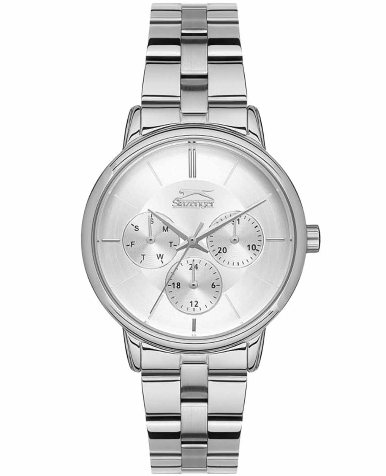 Эти элегантные женские часы Slazenger SL.09.2145.4.01 идеально подойдут для тех, кто ценит стиль и функциональность. Произведенные в Англии, они оснащены надежным кварцевым механизмом, который обеспечивает точное время. Корпус и браслет часов выполнены из металла, придающего изделию современный и изысканный вид. Минеральное стеклоМинеральное стеклоМинеральное стекло представляет собой искусственно выращенный минерал кварца. Такое стекло отличается особой устойчивостью к повреждениям и царапинам. Уступает по некоторым качествам сапфировому стеклу. защищает серебристый циферблат от царапин и повреждений, а водозащита уровня WR 30 позволяет использовать часы в условиях повышенной влажности. Диаметр корпуса составляет 35 мм, а толщина — 9 мм, что делает их аккуратными и утонченными, идеально подходящими для женского запястья. Ширина браслета равна 16 мм, и он оснащен раскладной застёжкойРаскладная застёжкаТакой тип застёжки используется только на браслетах из металла. Она никогда не раскрывается полностью, происходит разделение на 2 и более частей. Раскладывающая застёжка снизит вероятность потери часов к минимуму. для удобства ношения. Часы оснащены дополнительными функциями: на малых циферблатах отображаются дата и день недели, а также текущее время в 24-часовом формате, что добавляет удобства в использовании. Эти часы станут отличным дополнением к любому образу, подчеркивая вашу индивидуальность и утонченность.