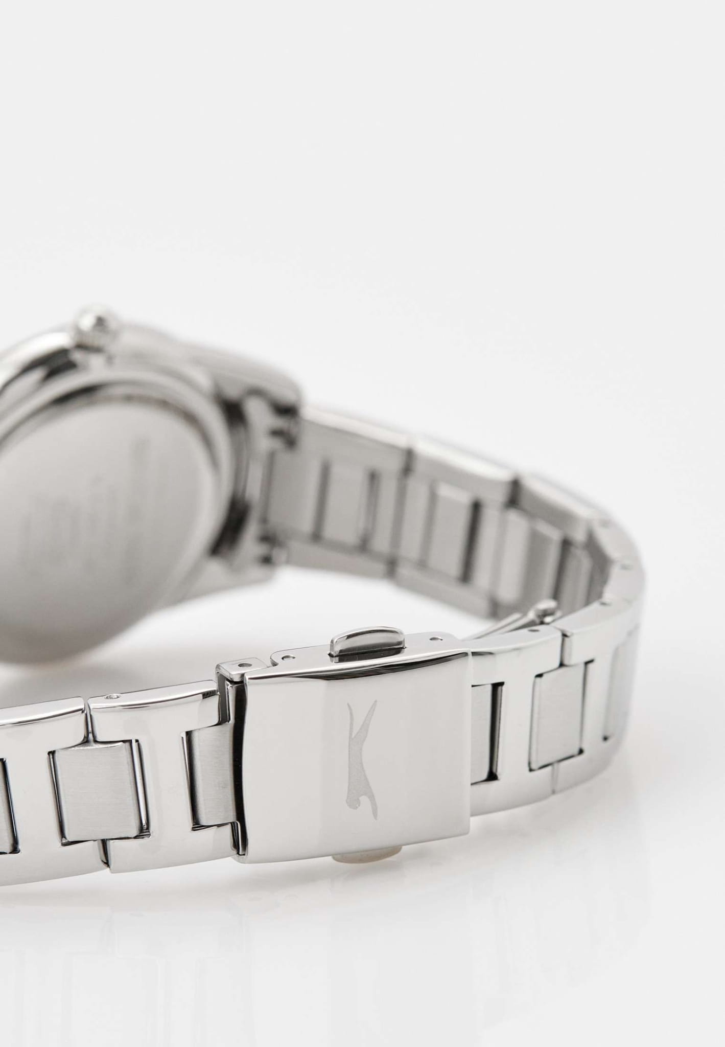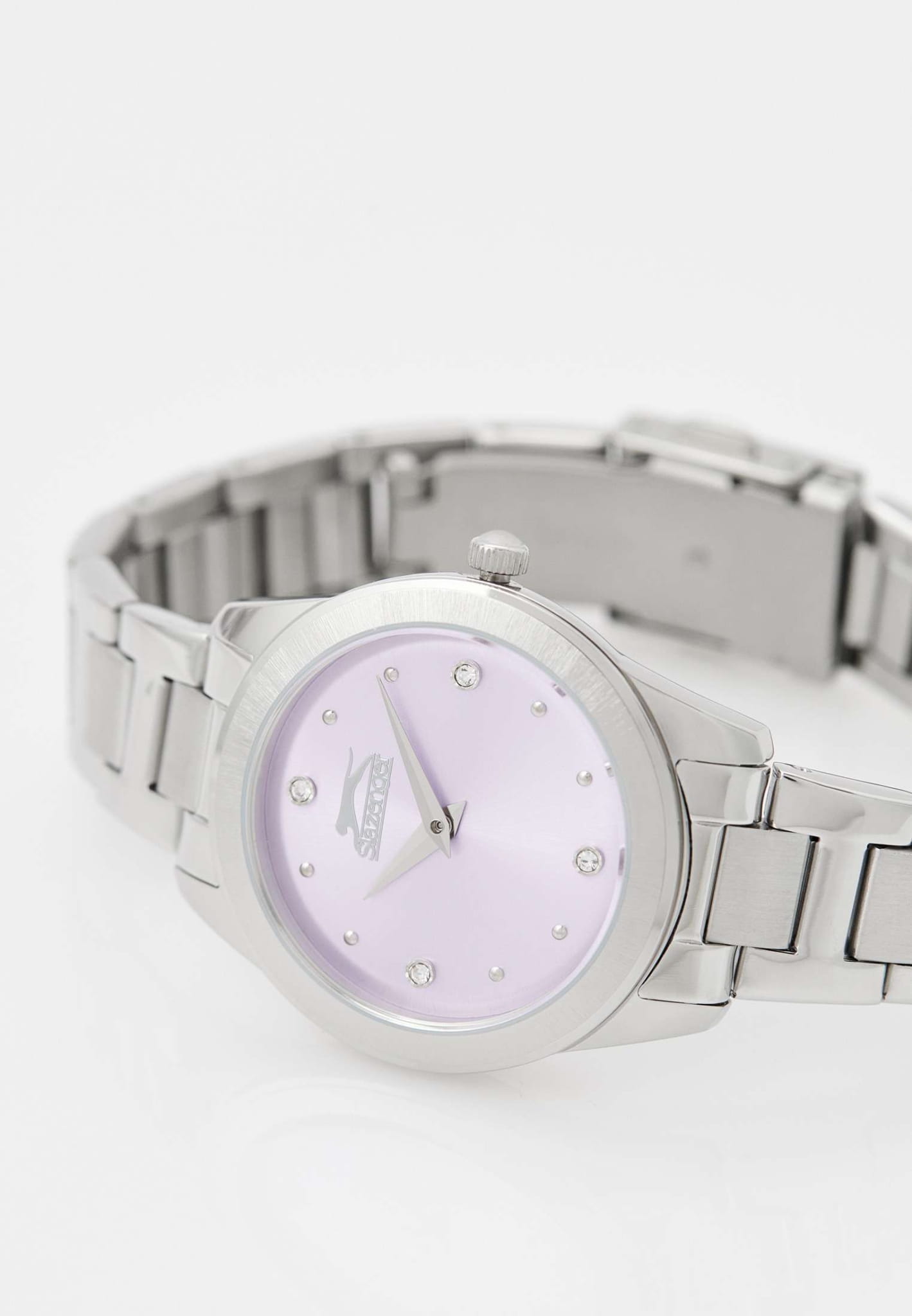 Часы Slazenger SL.09.2253.3.04 — это стильная и элегантная модель, созданная для тех, кто ценит утонченность и надежность. Корпус выполнен из прочного металла, а изящный серебристый браслет оснащён удобной раскладной застёжкойРаскладная застёжкаТакой тип застёжки используется только на браслетах из металла. Она никогда не раскрывается полностью, происходит разделение на 2 и более частей. Раскладывающая застёжка снизит вероятность потери часов к минимуму.. Минеральное стеклоМинеральное стеклоМинеральное стекло представляет собой искусственно выращенный минерал кварца. Такое стекло отличается особой устойчивостью к повреждениям и царапинам. Уступает по некоторым качествам сапфировому стеклу. защищает розовый циферблат, украшенный сияющими кристаллами, придающими аксессуару особый шарм. Кварцевый механизм обеспечивает точность хода, а водозащита класса WR 30 позволяет не беспокоиться о случайных брызгах. Диаметр корпуса составляет 33 мм, ширина браслета — 16 мм, толщина корпуса — 8 мм, что делает эти часы аккуратными и комфортными для повседневной носки. Модель весит 70 грамм. Часы прекрасно дополнят как деловой, так и повседневный образ, подчеркивая индивидуальность своей обладательницы.