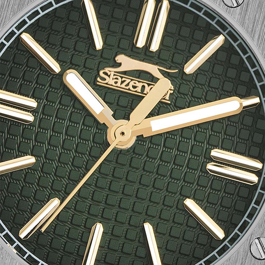 Женские кварцевые часы Slazenger SL.09.2306.3.02 — это элегантный и стильный аксессуар, идеально дополняющий любой образ. Корпус и браслет выполнены из суперметалла, защищён минеральным стекломМинеральное стеклоМинеральное стекло представляет собой искусственно выращенный минерал кварца. Такое стекло отличается особой устойчивостью к повреждениям и царапинам. Уступает по некоторым качествам сапфировому стеклу.. Циферблат зелёного цвета оформлен в классическом стиле, стрелки оснащены люминесцентным покрытиемЛюминесцентное покрытиеПозволяет считывать показания времени в темноте. Производители наносят на стрелки, часовые индексы, безель или поверхность циферблата светонакопительный состав, дающий холодное свечение., обеспечивающим хорошую читаемость в темноте. Заводная головка снабжена защитой для повышения надёжности. Браслет из суперметалла фиксируется на раскладной застёжкеРаскладная застёжкаТакой тип застёжки используется только на браслетах из металла. Она никогда не раскрывается полностью, происходит разделение на 2 и более частей. Раскладывающая застёжка снизит вероятность потери часов к минимуму., обеспечивая удобство и безопасность ношения. Водонепроницаемость 30 м позволяет использовать часы в повседневных условиях, защищая от случайных брызг и капель дождя. Модель сочетает в себе лёгкость, прочность и изысканный внешний вид.