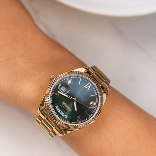 Женские элегантные наручные часы Slazenger SL.09.2338.4.05 сочетают в себе современный стиль и функциональность. Стильный корпус выполнен из суперметалла с IP-покрытиемIP-покрытиеМетод ионного напыления. Демонстрирует повышенную устойчивость к истиранию, окислению и химическим веществам. Под воздействием высокого давления и температуры около 1500°C молекулы металла надёжно соединяются с частицами корпуса часов., придающий модели дополнительную прочность и элегантный внешний вид. Изысканный циферблат защищён минеральным стекломМинеральное стеклоМинеральное стекло представляет собой искусственно выращенный минерал кварца. Такое стекло отличается особой устойчивостью к повреждениям и царапинам. Уступает по некоторым качествам сапфировому стеклу., устойчивым к царапинам и повреждениям. Водонепроницаемость 3 АТМ позволяет использовать часы в повседневных условиях — при мытье рук или под лёгким дождём. Браслет из суперметалла с IP-покрытиемIP-покрытиеМетод ионного напыления. Демонстрирует повышенную устойчивость к истиранию, окислению и химическим веществам. Под воздействием высокого давления и температуры около 1500°C молекулы металла надёжно соединяются с частицами корпуса часов. и с раскладной застёжкойРаскладная застёжкаТакой тип застёжки используется только на браслетах из металла. Она никогда не раскрывается полностью, происходит разделение на 2 и более частей. Раскладывающая застёжка снизит вероятность потери часов к минимуму., обеспечивающий надёжную фиксацию и комфорт при ношении. Окошко даты находится в положении 3 часа. Cтрелки покрыты люминесцентным покрытиемЛюминесцентное покрытиеПозволяет считывать показания времени в темноте. Производители наносят на стрелки, часовые индексы, безель или поверхность циферблата светонакопительный состав, дающий холодное свечение. для читаемости в условиях недостаточного освещения. Эта модель идеально подходит для женщин, ценящих стиль, функциональность и надёжность в одном аксессуаре.