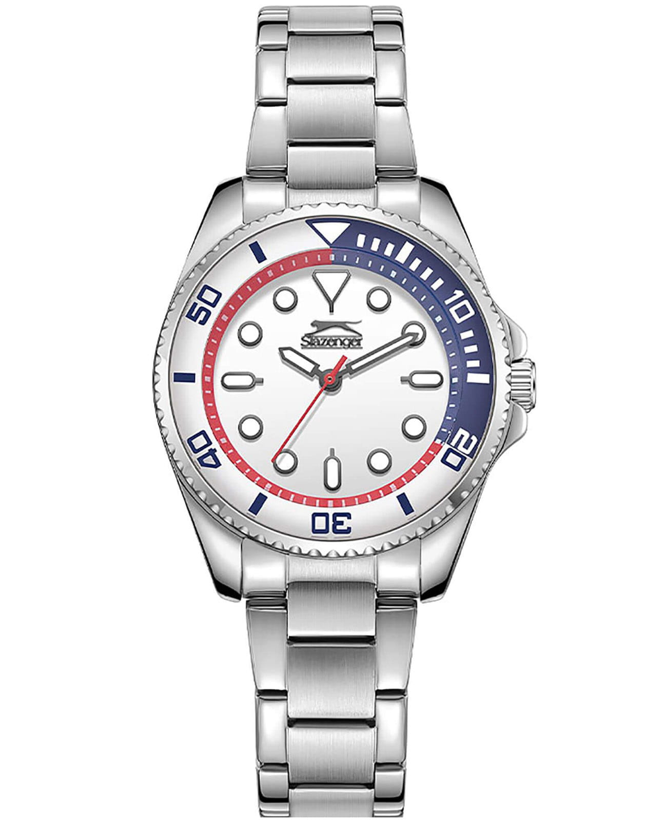 Женские кварцевые часы Slazenger SL.09.2353.3.01 – это сочетание элегантности, современного стиля и надёжности. Изящный корпус из суперметалла серебристого цвета, диаметром 32 мм и толщиной 10 мм, подчёркивает утончённость модели и делает их идеальным аксессуаром для любой ситуации – будь то деловая встреча, романтический вечер или повседневные выходы. Циферблат надёжно защищён минеральным стекломМинеральное стеклоМинеральное стекло представляет собой искусственно выращенный минерал кварца. Такое стекло отличается особой устойчивостью к повреждениям и царапинам. Уступает по некоторым качествам сапфировому стеклу., которое устойчиво к механическим повреждениям и сохраняет кристальную прозрачность. Браслет из суперметалла удобно облегает запястье и фиксируется с помощью раскладной застёжкиРаскладная застёжкаТакой тип застёжки используется только на браслетах из металла. Она никогда не раскрывается полностью, происходит разделение на 2 и более частей. Раскладывающая застёжка снизит вероятность потери часов к минимуму., обеспечивая надёжность и комфорт в повседневном ношении. Утончённый стиль, внимание к деталям и практичность делают эту модель идеальным выбором для современных женщин, ценящих эстетику и функциональность. Поворотный безельБезельВнешний ободок, закрепляющий стекло. В спортивных часах так называется поворотное кольцо с делениями на циферблате, выполняет роль таймера – замеряет отрезки времени на шкале. Неподвижный безель – элемент декора. Однонаправленно вращающийся безель на дайверских часах позволяет фиксировать моменты погружения и выныривания на поверхность. с IP-покрытиемIP-покрытиеМетод ионного напыления. Демонстрирует повышенную устойчивость к истиранию, окислению и химическим веществам. Под воздействием высокого давления и температуры около 1500°C молекулы металла надёжно соединяются с частицами корпуса часов.. Стрелки и метки покрыты люминесцентным покрытиемЛюминесцентное покрытиеПозволяет считывать показания времени в темноте. Производители наносят на стрелки, часовые индексы, безель или поверхность циферблата светонакопительный состав, дающий холодное свечение., обеспечивающим отличную читаемость в темноте. Водозащита до 30 метров позволит защитить корпус от случайных брызг или капель дождя.
