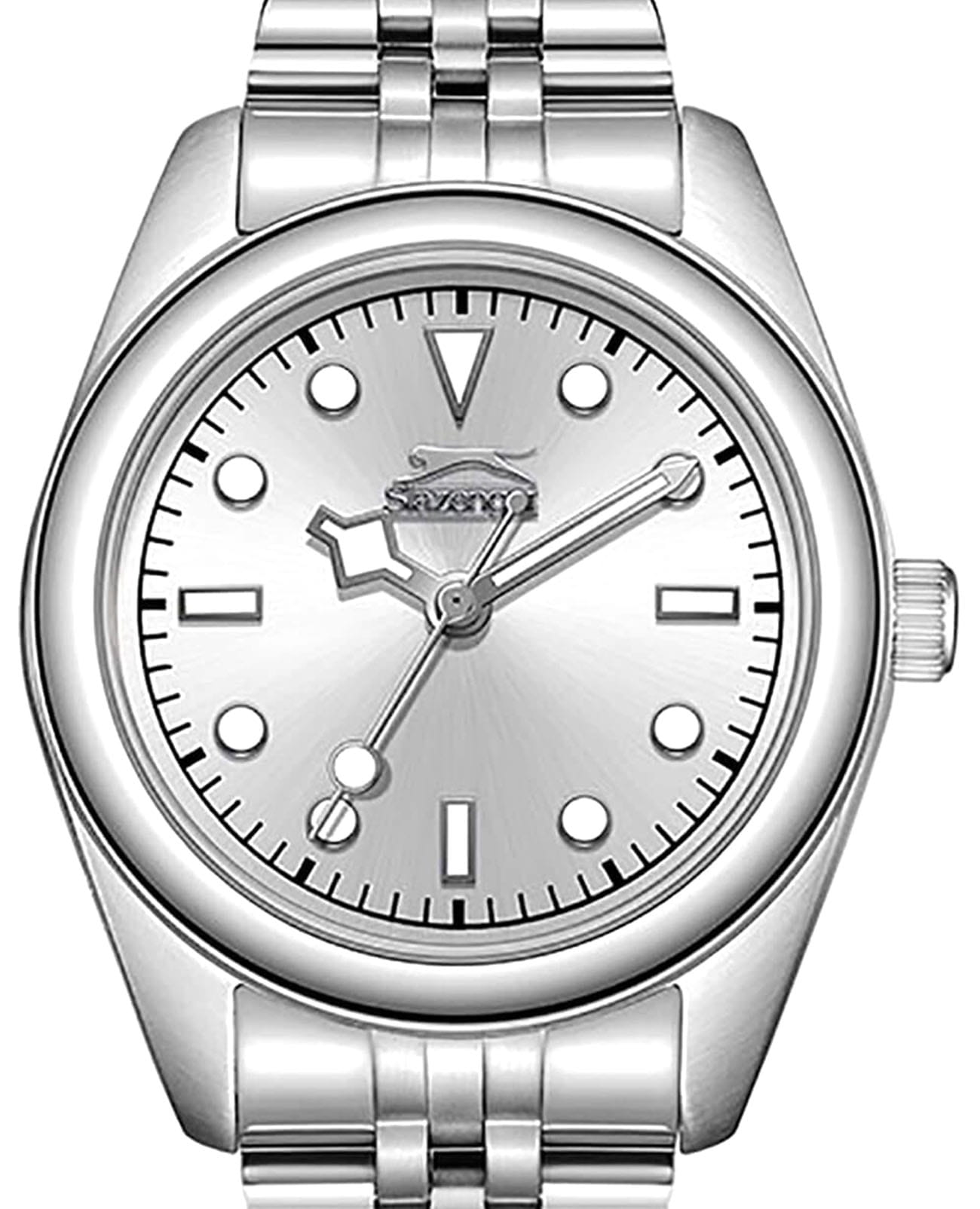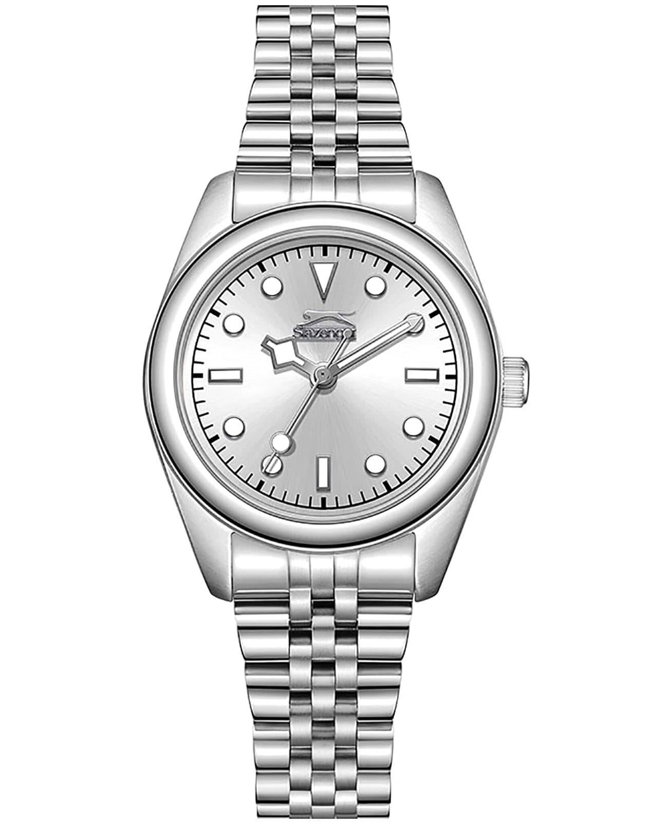 Женские кварцевые часы Slazenger SL.09.2355.3.01 – это сочетание элегантности, современного стиля и надёжности. Изящный корпус из суперметалла серебристого цвета, диаметром 31 мм и толщиной 10 мм, подчёркивает утончённость модели и делает их идеальным аксессуаром для любой ситуации – будь то деловая встреча, романтический вечер или повседневные выходы. Циферблат надёжно защищён минеральным стекломМинеральное стеклоМинеральное стекло представляет собой искусственно выращенный минерал кварца. Такое стекло отличается особой устойчивостью к повреждениям и царапинам. Уступает по некоторым качествам сапфировому стеклу., которое устойчиво к механическим повреждениям и сохраняет кристальную прозрачность. Браслет из суперметалла удобно облегает запястье и фиксируется с помощью раскладной застёжкиРаскладная застёжкаТакой тип застёжки используется только на браслетах из металла. Она никогда не раскрывается полностью, происходит разделение на 2 и более частей. Раскладывающая застёжка снизит вероятность потери часов к минимуму., обеспечивая надёжность и комфорт в повседневном ношении. Утончённый стиль, внимание к деталям и практичность делают эту модель идеальным выбором для современных женщин, ценящих эстетику и функциональность. Стрелки и метки покрыты люминесцентным покрытиемЛюминесцентное покрытиеПозволяет считывать показания времени в темноте. Производители наносят на стрелки, часовые индексы, безель или поверхность циферблата светонакопительный состав, дающий холодное свечение., обеспечивающим отличную читаемость в темноте. Водозащита до 30 метров позволит защитить корпус от случайных брызг или капель дождя.
