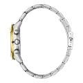 Мужские кварцевые часы Slazenger — это выразительный и функциональный аксессуар. Корпус диаметром 43 мм и толщиной 12 мм выполнен из нержавеющей стали 316L. Циферблат серебристого цвета оформлен индексами и стрелками с люминесцентным покрытиемЛюминесцентное покрытиеПозволяет считывать показания времени в темноте. Производители наносят на стрелки, часовые индексы, безель или поверхность циферблата светонакопительный состав, дающий холодное свечение., обеспечивающим хорошую читаемость в темноте. БезельБезельВнешний ободок, закрепляющий стекло. В спортивных часах так называется поворотное кольцо с делениями на циферблате, выполняет роль таймера – замеряет отрезки времени на шкале. Неподвижный безель – элемент декора. Однонаправленно вращающийся безель на дайверских часах позволяет фиксировать моменты погружения и выныривания на поверхность. из нержавеющей стали с PVD-покрытиемPVDУльтратонкое покрытие наносится в технике вакуумного напыления, сочетает в себе нитрид титана особой прочности со слоем золота или оксида хрома. Несёт в себе декоративную или защитную функцию.. Циферблат защищён минеральным стекломМинеральное стеклоМинеральное стекло представляет собой искусственно выращенный минерал кварца. Такое стекло отличается особой устойчивостью к повреждениям и царапинам. Уступает по некоторым качествам сапфировому стеклу.. Механизм — кварцевый калибр JP25. Часы оснащены индикацией дня недели, даты, 12/24-часового формата времени и функцией второго часового пояса (GMT)Второй часовой поясФункция, позволяющая отображать время двух часовых поясов одновременно.. Окошко даты расположено между 4 и 5 часами. Часы оснащены стальным браслетом из нержавеющей стали 316L с раскладной застёжкойРаскладная застёжкаТакой тип застёжки используется только на браслетах из металла. Она никогда не раскрывается полностью, происходит разделение на 2 и более частей. Раскладывающая застёжка снизит вероятность потери часов к минимуму.. Водонепроницаемость 100 м позволяет использовать часы для плавания и повседневного ношения. Гарантия — 12 месяцев. Идеальный выбор для тех, кто ценит стиль, функциональность и качество.