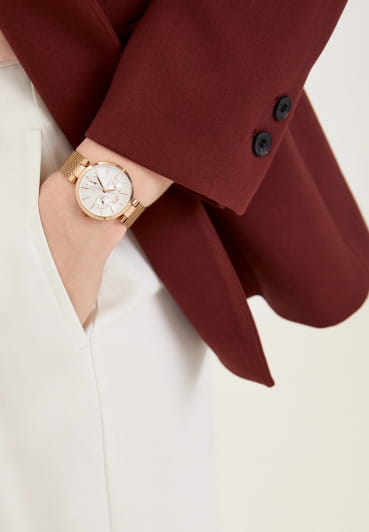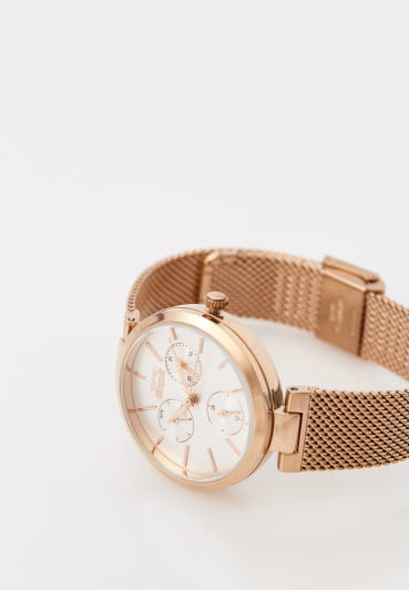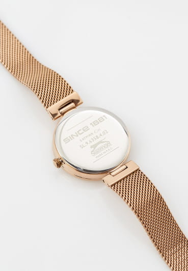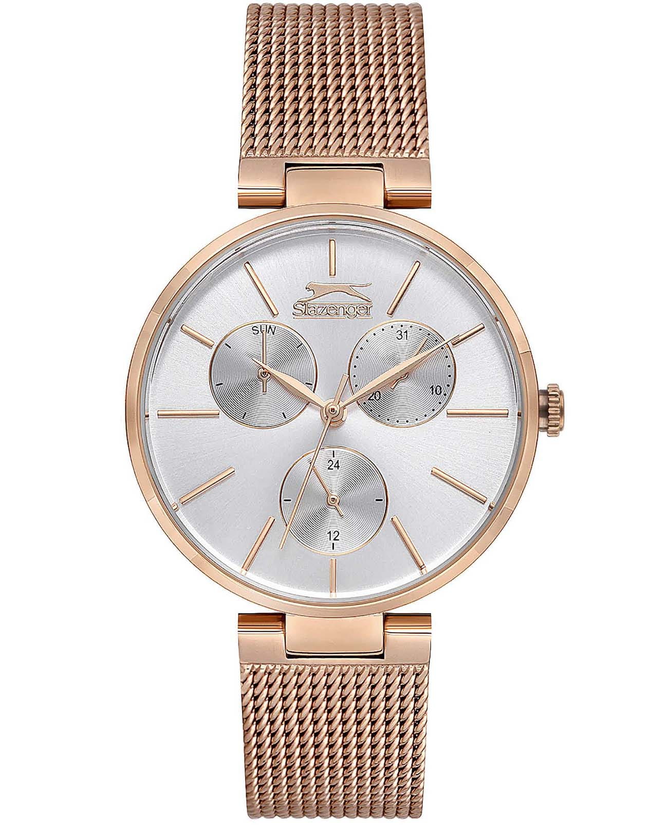 Женские кварцевые часы Slazenger — это выразительный и функциональный аксессуар. Корпус диаметром 34 мм и толщиной 8 мм выполнен из суперметалла с IP-покрытиемIP-покрытиеМетод ионного напыления. Демонстрирует повышенную устойчивость к истиранию, окислению и химическим веществам. Под воздействием высокого давления и температуры около 1500°C молекулы металла надёжно соединяются с частицами корпуса часов.. Циферблат белого цвета оформлен индексами, стрелками и тремя вынесенными субциферблатами: для отображения дня недели, даты и 24-часового формата времени. Циферблат защищён минеральным стекломМинеральное стеклоМинеральное стекло представляет собой искусственно выращенный минерал кварца. Такое стекло отличается особой устойчивостью к повреждениям и царапинам. Уступает по некоторым качествам сапфировому стеклу.. Часы оснащены браслетом миланского плетения из суперметалла на раскладном замкеРаскладная застёжкаТакой тип застёжки используется только на браслетах из металла. Она никогда не раскрывается полностью, происходит разделение на 2 и более частей. Раскладывающая застёжка снизит вероятность потери часов к минимуму.. Водонепроницаемость 30 м позволяет использовать часы в повседневных условиях. Идеальный выбор для тех, кто ценит стиль и качество.