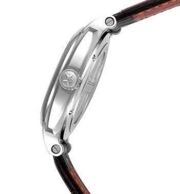 Внутри установлен японский механический механизм Miyota 8215 с автоподзаводом, обеспечивающий высокую точность хода. Запас хода составляет около 40 часов. На циферблате отображается текущее число месяца.