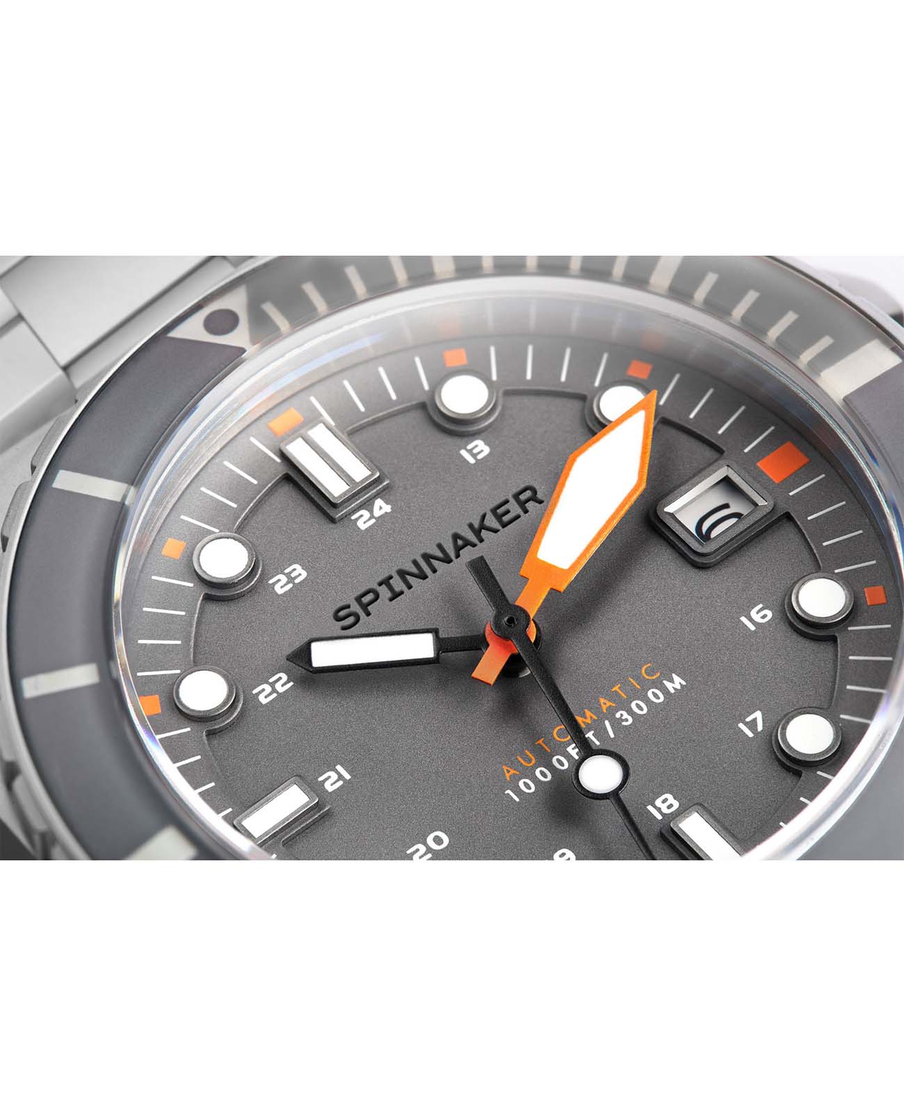 Мужские итальянские механические часы с автоподзаводом Spinnaker Dumas SP-5081-KK, механический механизм (автоматический калибр) с высокой точностью. Циферблат с люминесцентным покрытиемЛюминесцентное покрытиеПозволяет считывать показания времени в темноте. Производители наносят на стрелки, часовые индексы, безель или поверхность циферблата светонакопительный состав, дающий холодное свечение. стрелок, меток и безеляБезельВнешний ободок, закрепляющий стекло. В спортивных часах так называется поворотное кольцо с делениями на циферблате, выполняет роль таймера – замеряет отрезки времени на шкале. Неподвижный безель – элемент декора. Однонаправленно вращающийся безель на дайверских часах позволяет фиксировать моменты погружения и выныривания на поверхность. дополнен сапфировым стекломСапфировое стеклоПрочный и надёжный материал из кристалла сапфира синтетического происхождения, характеризующийся особой твёрдостью и устойчивостью к царапинам и повреждениям. с антибликовым покрытием, устойчивым к появлению царапин и обладающее высокой прозрачностью. Класс водозащиты: 300 метров (погружение с аквалангом). Корпус часов изготовлен из нержавеющей стали 316L. Благодаря обновленному безелюБезельВнешний ободок, закрепляющий стекло. В спортивных часах так называется поворотное кольцо с делениями на циферблате, выполняет роль таймера – замеряет отрезки времени на шкале. Неподвижный безель – элемент декора. Однонаправленно вращающийся безель на дайверских часах позволяет фиксировать моменты погружения и выныривания на поверхность. с IP-покрытиемIP-покрытиеМетод ионного напыления. Демонстрирует повышенную устойчивость к истиранию, окислению и химическим веществам. Под воздействием высокого давления и температуры около 1500°C молекулы металла надёжно соединяются с частицами корпуса часов. с более техническим изгибом, мастерство и точность изготовления часов Spinnaker Watches демонстрируются в безелеБезельВнешний ободок, закрепляющий стекло. В спортивных часах так называется поворотное кольцо с делениями на циферблате, выполняет роль таймера – замеряет отрезки времени на шкале. Неподвижный безель – элемент декора. Однонаправленно вращающийся безель на дайверских часах позволяет фиксировать моменты погружения и выныривания на поверхность. из закаленного стекла. Стальной браслет на раскладной застёжкеРаскладная застёжкаТакой тип застёжки используется только на браслетах из металла. Она никогда не раскрывается полностью, происходит разделение на 2 и более частей. Раскладывающая застёжка снизит вероятность потери часов к минимуму..