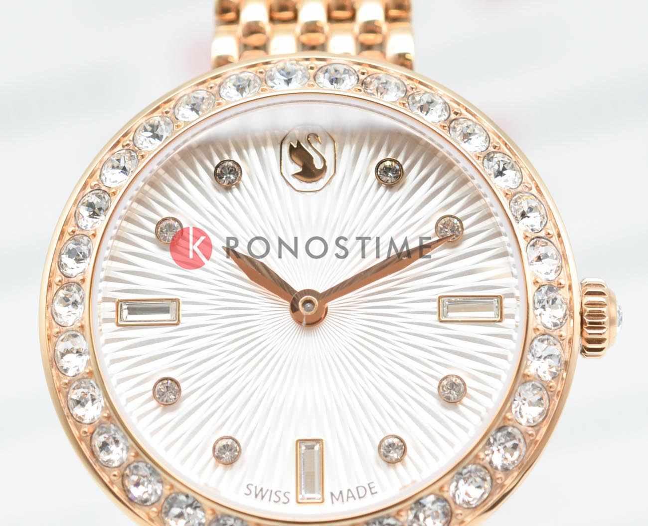Часы Swarovski 5672981 – это воплощение изысканного дизайна и функциональности, созданное для тех, кто ценит красоту и точность. Стальной круглый корпус имеет красивую отделку PVDPVDУльтратонкое покрытие наносится в технике вакуумного напыления, сочетает в себе нитрид титана особой прочности со слоем золота или оксида хрома. Несёт в себе декоративную или защитную функцию. покрытием оттенка розового золота и оснащен безелемБезельВнешний ободок, закрепляющий стекло. В спортивных часах так называется поворотное кольцо с делениями на циферблате, выполняет роль таймера – замеряет отрезки времени на шкале. Неподвижный безель – элемент декора. Однонаправленно вращающийся безель на дайверских часах позволяет фиксировать моменты погружения и выныривания на поверхность., украшенным паве из тридцати мерцающих кристаллов. Под минеральным стекломМинеральное стеклоМинеральное стекло представляет собой искусственно выращенный минерал кварца. Такое стекло отличается особой устойчивостью к повреждениям и царапинам. Уступает по некоторым качествам сапфировому стеклу. открывается белый циферблат дополненный логотипом Swarovski в виде лебедя на 12 часах и кристаллами на отметках 3, 6 и 9 часов. Отсутствие секундной стрелки подчеркивает минимализм и утонченность дизайна. Рифленая заводная головка также украшена сверкающим кристаллом круглой огранки. Стальной браслет с отделкой PVDPVDУльтратонкое покрытие наносится в технике вакуумного напыления, сочетает в себе нитрид титана особой прочности со слоем золота или оксида хрома. Несёт в себе декоративную или защитную функцию. покрытием цвета розового золота и застежкой «бабочка»Застёжка "бабочка"Такой вид застёжки дополняется предохранителями, помогающими избежать случайного раскрытия браслета. Обладают изящным исполнением. . Водозащита 50WR делает их устойчивыми к влаге, позволяя наслаждаться стильным аксессуаром в любых условиях.