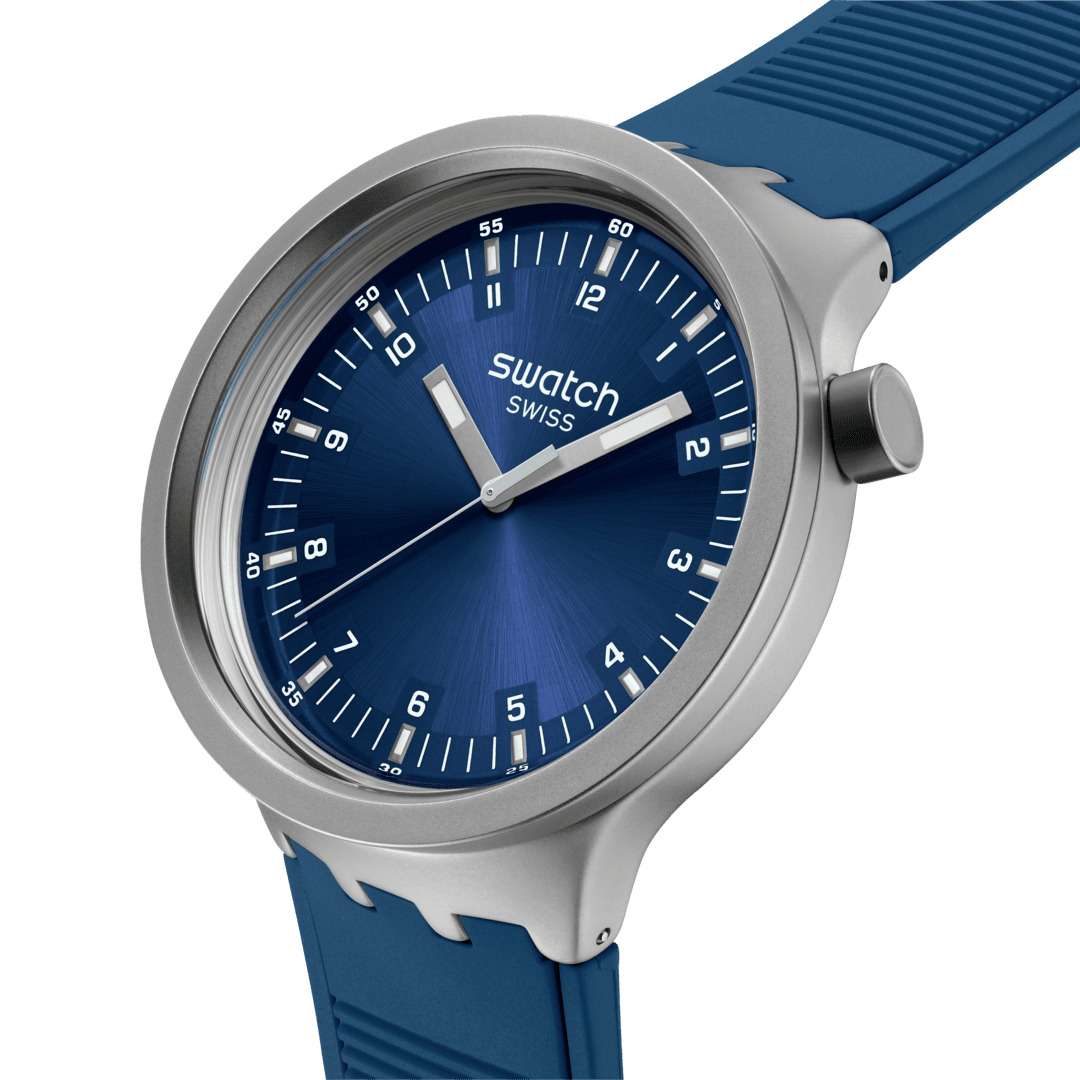 Часы Swatch SB07S102 — это стильный и современный аксессуар для тех, кто ценит лёгкость и комфорт. Часы идеально подойдут как для мужчин, так и для женщин. На синем циферблате с радиальной полировкой этих крупных часов размещены светящиеся в темноте индексы, белые цифры и минутная шкала, серебристые стрелки со светящимися в темноте, благодаря люминесцентному покрытиюЛюминесцентное покрытиеПозволяет считывать показания времени в темноте. Производители наносят на стрелки, часовые индексы, безель или поверхность циферблата светонакопительный состав, дающий холодное свечение., отметками на минутной и часовой. Матированные методом пескоструйной обработки корпус из нержавеющей стали эффектно контрастируют с фактурным синим ремешком с тренчиками в тон и стальной полупряжкой. Водозащита 30 метров делает часы практичными для повседневного использования. Эти часы подойдут для повседневного ношения и станут ярким акцентом в вашем наряде.