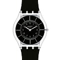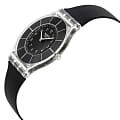 Часы SFK361 Black Classiness от бренда Swatch — это безупречно подобранный аксессуар, который может многое сказать о вкусе человека. Эти швейцарские часы легкие и лаконичные, с толщиной корпуса всего 3,9 мм и кварцевым механизмом, что делает их идеальными для вашего стильного образа! Уникальная технология крепления механизма и рекордно малое количество деталей обеспечивают точность хода на уровне +/- 0,1 секунды в сутки при нормальных температурных и влажностных условиях. Стекло, изготовленное по технологии PMMA, легко поддается полировке. Ширина ремешка составляет 16,5 мм, а длина — от 150 до 200 мм. Силиконовый ремень на классической застежке.