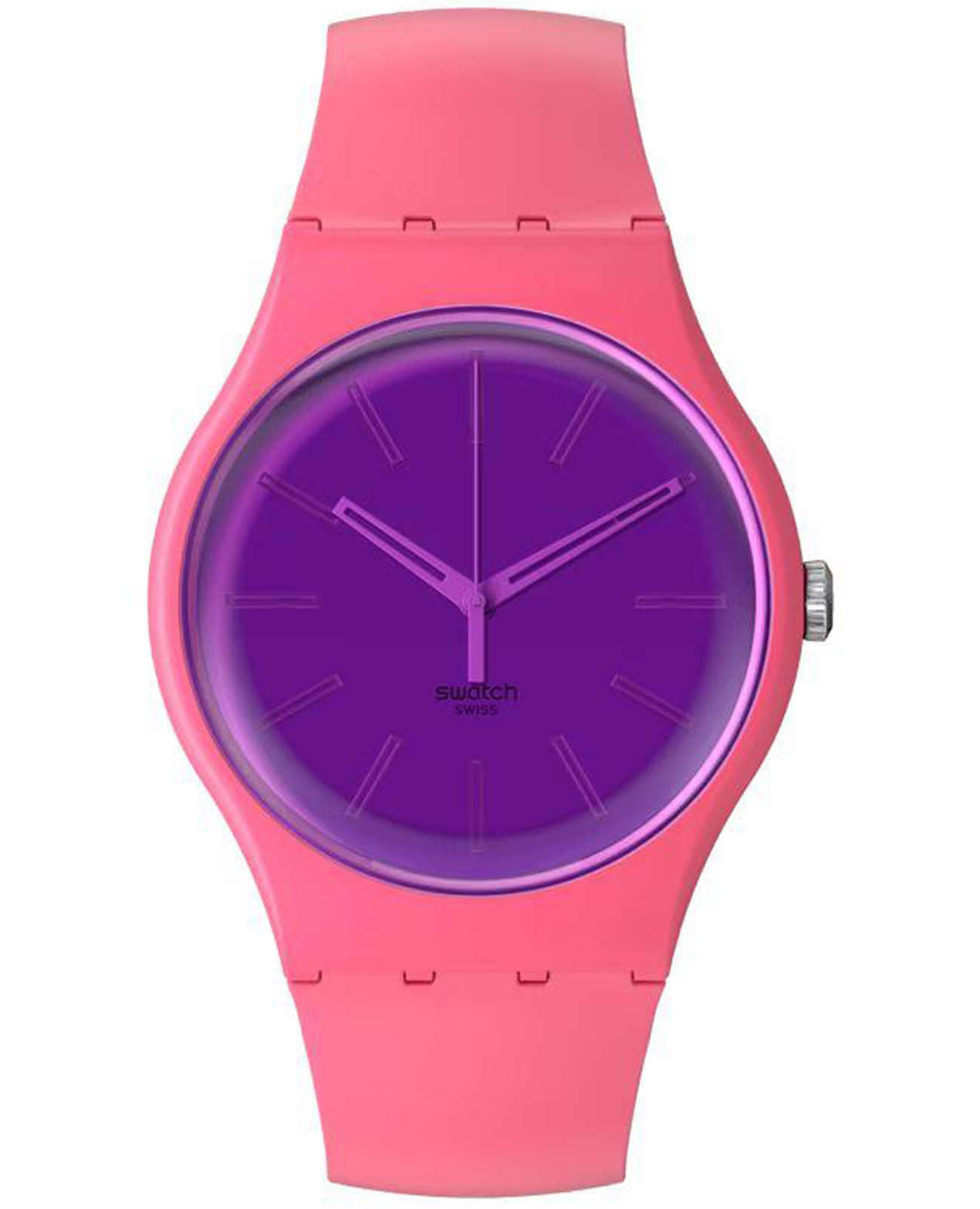 Часы Swatch SO29P102 —  стильный и надежный аксессуар. Эти розовые часы с фиолетовой пряжкой и петлей имеют полированный зеркальный циферблат с розовыми стрелками в корпусе из биоматериала и прозрачным фиолетовым стеклом из того же материала. Используется специальная техника гравировки, которая придает часам блестящий финиш. Ремешок из силикона на стандартной застёжке. Внутри часов установлен надежный кварцевый механизм, который обеспечивает точность хода. Эти часы водонепроницаемы до 30 метров, что позволяет не беспокоиться о случайных брызгах или дождевых каплях. Swatch SO29P102 — это идеальный выбор для тех, кто ценит сочетание стиля, комфорта и функциональности в одном аксессуаре.