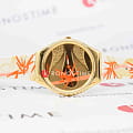 Часы Swatch SYXS158 — это стильный и современный аксессуар для тех, кто ценит лёгкость и комфорт. Часы идеально подойдут как для мужчин, так и для женщин. Эти ультратонкие часы посвящены Году Змеи. Циферблат, покрытый минеральным стекломМинеральное стеклоМинеральное стекло представляет собой искусственно выращенный минерал кварца. Такое стекло отличается особой устойчивостью к повреждениям и царапинам. Уступает по некоторым качествам сапфировому стеклу. из матового золота с разноцветным принтом и оранжевыми часовой и минутной стрелками, которые светятся в темноте благодаря люминесцентному покрытиюЛюминесцентное покрытиеПозволяет считывать показания времени в темноте. Производители наносят на стрелки, часовые индексы, безель или поверхность циферблата светонакопительный состав, дающий холодное свечение.. Блестящий корпус из нержавеющей стали с золотистым PVDPVDУльтратонкое покрытие наносится в технике вакуумного напыления, сочетает в себе нитрид титана особой прочности со слоем золота или оксида хрома. Несёт в себе декоративную или защитную функцию. покрытием дополнен ремешком из кожи и текстиля цвета слоновой кости с оранжевой вышивкой и золотым принтом. Петля из кожи и текстиля цвета слоновой кости и блестящая пряжка из нержавеющей стали с золотистым PVDPVDУльтратонкое покрытие наносится в технике вакуумного напыления, сочетает в себе нитрид титана особой прочности со слоем золота или оксида хрома. Несёт в себе декоративную или защитную функцию. покрытием дополняют часы. Водозащита 30 метров делает часы практичными для повседневного использования. Эти часы подойдут для повседневного ношения и станут ярким акцентом в вашем наряде.