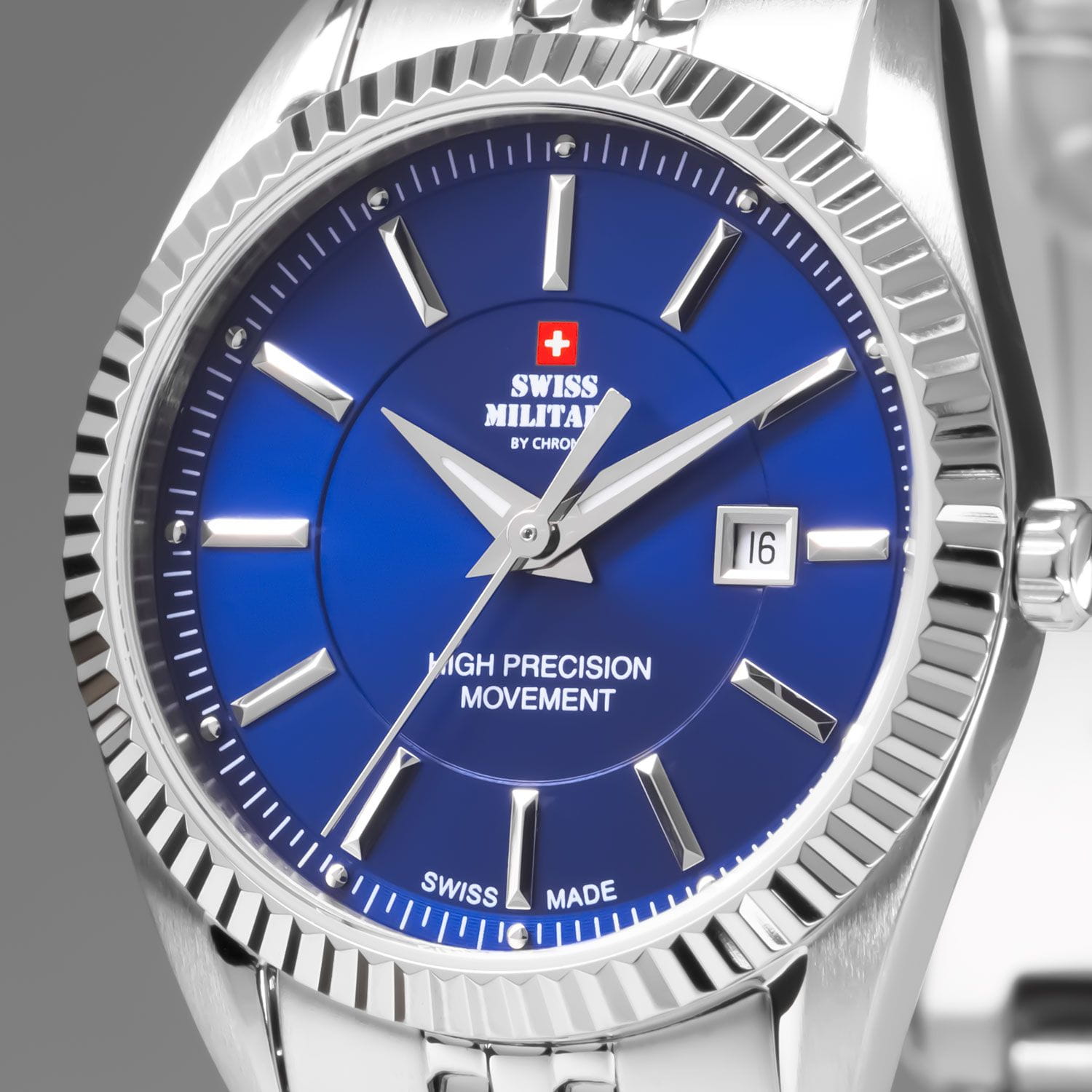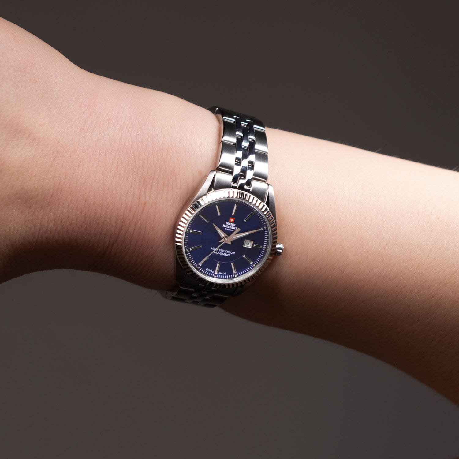 Часы Swiss Military SM34066.03 — это элегантная женская модель, сочетающая классический дизайн и высокую точность. Корпус диаметром 30 мм выполнен из нержавеющей стали, с рифлёным безелем. Синий циферблат с классическими индексами и стрелками защищён минеральным стекломМинеральное стеклоМинеральное стекло представляет собой искусственно выращенный минерал кварца. Такое стекло отличается особой устойчивостью к повреждениям и царапинам. Уступает по некоторым качествам сапфировому стеклу. с сапфировым покрытием, устойчивым к царапинам.