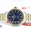 Браслет из нержавеющей стали с PVD-покрытиемPVDУльтратонкое покрытие наносится в технике вакуумного напыления, сочетает в себе нитрид титана особой прочности со слоем золота или оксида хрома. Несёт в себе декоративную или защитную функцию. и раскладной застёжкойРаскладная застёжкаТакой тип застёжки используется только на браслетах из металла. Она никогда не раскрывается полностью, происходит разделение на 2 и более частей. Раскладывающая застёжка снизит вероятность потери часов к минимуму. гарантирует комфортное ношение и надёжную фиксацию. Водозащита до 10 ATM делает часы подходящими для плавания и других водных активностей.