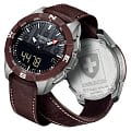 Стильный аксессуар с узором на циферблате не только станет прекрасным дополнением к образу, это мини-компьютер на запястье. Он оснащён большим количеством полезных функций: компас, барометр, будильник, мировое времяМировое время Полезное часовое усложнение, отображающее время в основных городах и известных областях по всему миру, оно связано с часовыми поясами, удобно для путешественников и бизнесменов. , таймер, второй часовой пояс, хронографХронографФункция позволяет измерять отрезки времени с особой точностью: часы, минуты, секунды. Верным признаком хронографа является наличие на циферблате 3 дополнительных окошек-счётчиков.. Управление функционалом осуществляется с помощью тактильного сапфирового стекла с покрытием «антиблик». Кварцевый механизм ETA E84.301. Питание от солнечного света . Керамический безельБезельВнешний ободок, закрепляющий стекло. В спортивных часах так называется поворотное кольцо с делениями на циферблате, выполняет роль таймера – замеряет отрезки времени на шкале. Неподвижный безель – элемент декора. Однонаправленно вращающийся безель на дайверских часах позволяет фиксировать моменты погружения и выныривания на поверхность. устойчив к царапинам. Корпус из титана с антимагнитными свойствами. Задняя крышка с гравировкой. Люминесцентная подсветкаЛюминесцентное покрытиеПозволяет считывать показания времени в темноте. Производители наносят на стрелки, часовые индексы, безель или поверхность циферблата светонакопительный состав, дающий холодное свечение.. Водостойкость 10 бар. Ремешок из натуральной кожи. . Индикатор EOLEOLПредставляет собой систему, уведомляющую владельца часов о необходимости замены элемента питания. За 2 недели до полного разряда батарейки секундная стрелка перестаёт ходить чётко и начинает перепрыгивать на 3-4 деления.. Габариты: 45 x 45 x 13,1 мм.