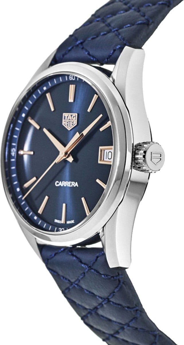 Элегантные часы TAG Heuer WBK1312.FC8259 демонстрируют женственность в новом формате. Часы выполнены в корпусе из качественной нержавеющей стали, диаметр 36 мм. Стрелки, индексы и отделка окна даты покрыты розовым золотом. Модель оснащена точным и надежным кварцевым механизмом. Ремешок - синяя стеганая кожа.