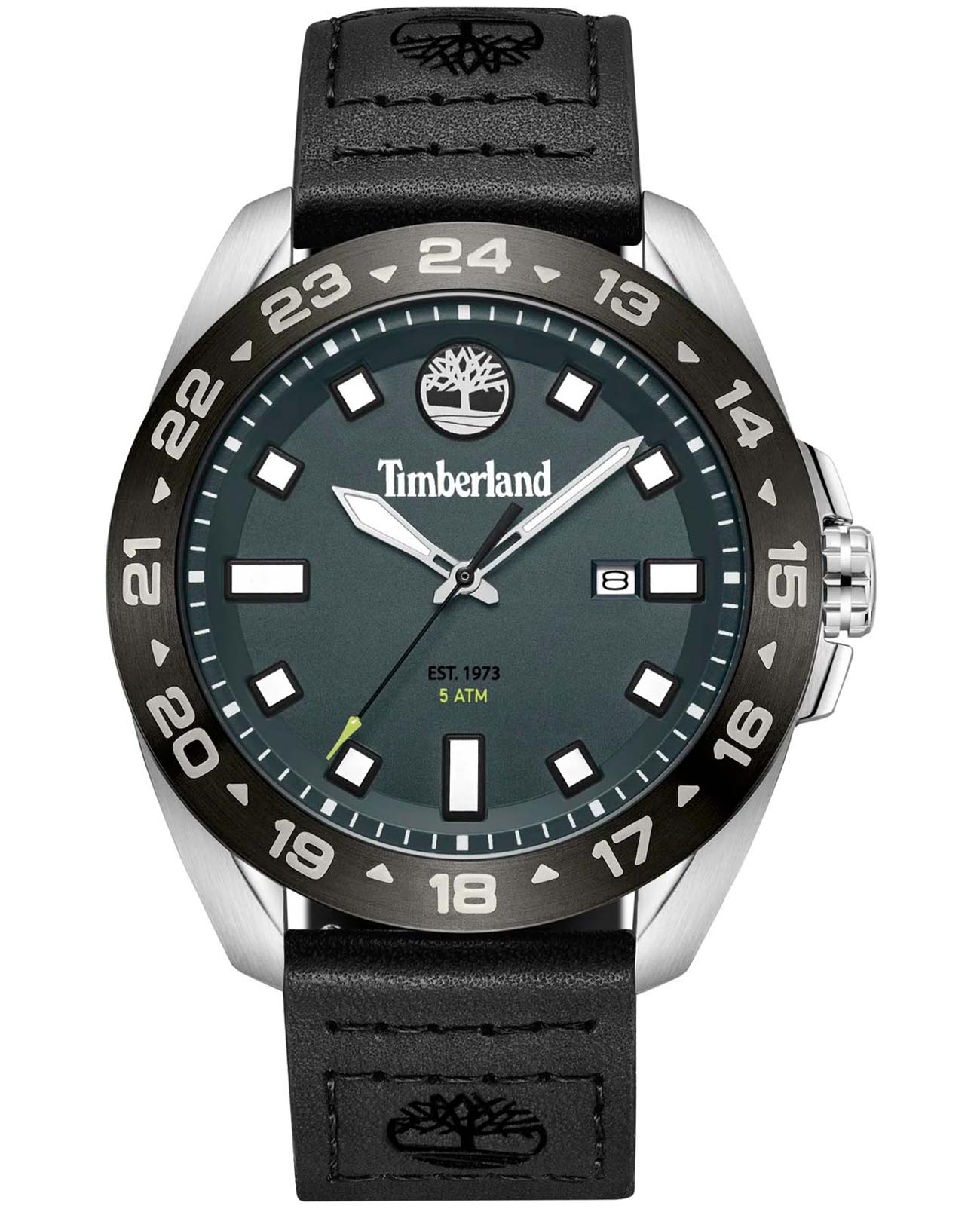 Мужские часы Timberland Carrigan TDWGB0029402, кварцевый механизм с высокой точностью. Класс водозащиты: 50 метров, позволит защитить корпус от случайных брызг или капель дождя. БезельБезельВнешний ободок, закрепляющий стекло. В спортивных часах так называется поворотное кольцо с делениями на циферблате, выполняет роль таймера – замеряет отрезки времени на шкале. Неподвижный безель – элемент декора. Однонаправленно вращающийся безель на дайверских часах позволяет фиксировать моменты погружения и выныривания на поверхность. изготовлен из нержавеющей стали с PVD-покрытиемPVDУльтратонкое покрытие наносится в технике вакуумного напыления, сочетает в себе нитрид титана особой прочности со слоем золота или оксида хрома. Несёт в себе декоративную или защитную функцию.. Окошко даты находится в положении 3 часа. Стрелки и метки с люминесцентным покрытиемЛюминесцентное покрытиеПозволяет считывать показания времени в темноте. Производители наносят на стрелки, часовые индексы, безель или поверхность циферблата светонакопительный состав, дающий холодное свечение..