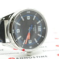 Аксессуар Alpine On Board имеет оригинальную секундную стрелку с логотипом, фирменной эмблемой украшена и задняя крышка. Использована цветовая расцветка автомобилей Alpine, акцент на синие и красные элементы. Оригинально смотрится перфорированный ремешок из натуральной кожи. Высокая точность хода обеспечивается кварцевым механизмом ETA F07.111. Водостойкость 100 метров. Сапфировое стекло. . Индикация даты, функция EOLEOLПредставляет собой систему, уведомляющую владельца часов о необходимости замены элемента питания. За 2 недели до полного разряда батарейки секундная стрелка перестаёт ходить чётко и начинает перепрыгивать на 3-4 деления.. Габариты: 45 x 45 x 10,55 мм.