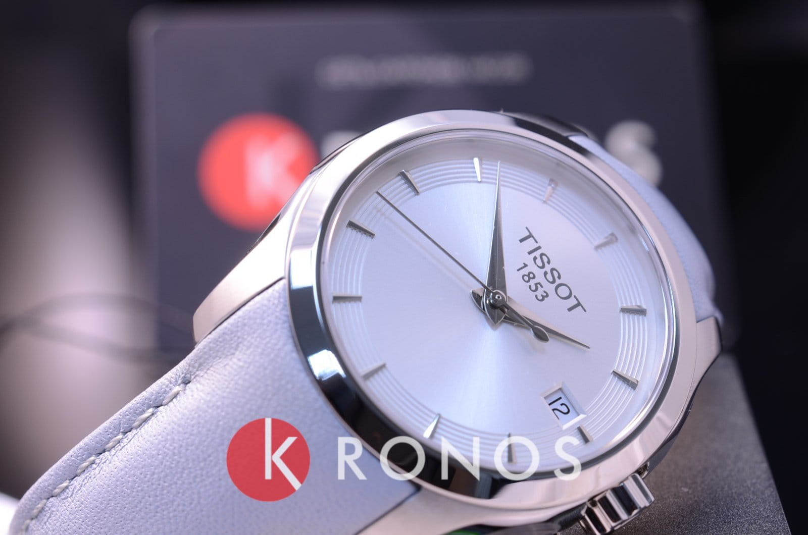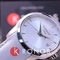 Компактная модель красиво смотрится на запястье, утончённости придаёт лаконичный кожаный ремешок нежно-голубого оттенка. Серебристый циферблат в минималистичном дизайне отличается элегантностью, ничто не мешает просмотру показателей. Высокую точность хода обеспечивается швейцарским кварцевым калибром ETA F05.111. Надёжное стекло из сапфира. Водостойкость до 10 бар. Корпус из нержавеющей стали 316L. . Апертура даты. Габариты: 32 x 32 x 8,1 мм.