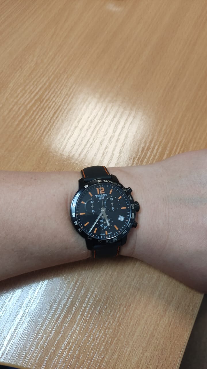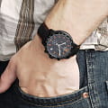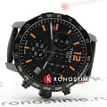 Чёрный фактурный циферблат никогда не утратит актуальности, брендовый аксессуар стильно смотрится на запястье и позволит вам всегда ощущать себя на высоте. В качестве материала для изготовления корпуса была выбрана нержавеющая сталь 316L с PDV покрытием. Кварцевый механизм ETA G10.211 с высокой точностью хода. Стекло из сапфира. Водонепроницаемость до 10 бар. Люминесцентная подсветкаЛюминесцентное покрытиеПозволяет считывать показания времени в темноте. Производители наносят на стрелки, часовые индексы, безель или поверхность циферблата светонакопительный состав, дающий холодное свечение.. Кожаный ремешок с оранжевой прострочкой. ХронографХронографФункция позволяет измерять отрезки времени с особой точностью: часы, минуты, секунды. Верным признаком хронографа является наличие на циферблате 3 дополнительных окошек-счётчиков., секундомер, индикация текущего числа, тахиметрТахиметрРазмеченная шкала, располагается на ободке или безеле часов. Тахиметр позволяет рассчитать скорость на определённом участке пути, расстояние измеряется в километрах или милях.. Габариты: 42 x 42 x 10,7 мм.
