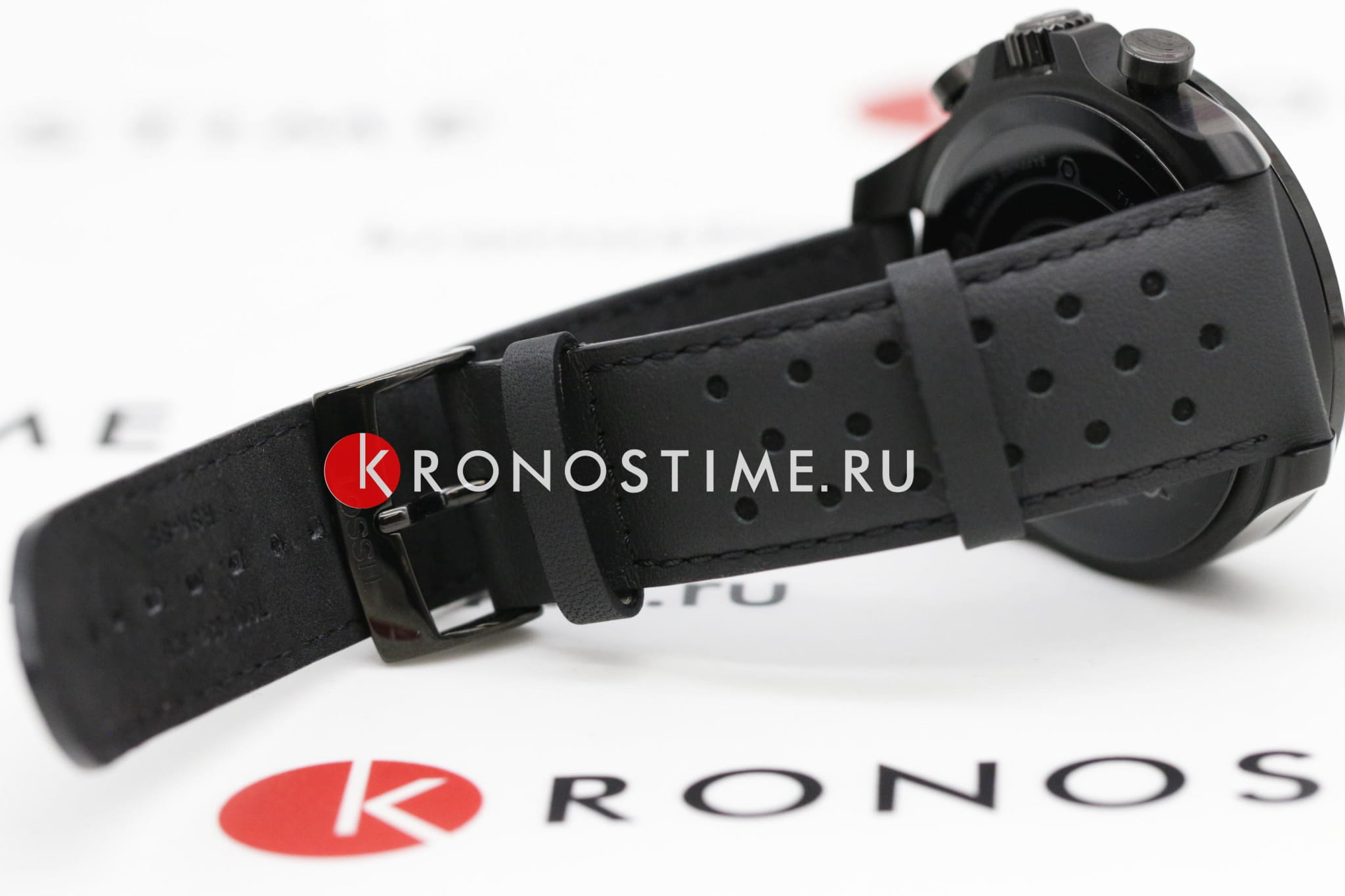 Стильный аксессуар полностью выполнен в чёрном цвете, исключение составляют лишь серебристые часовые метки и стрелки, а также ободок счётчиков хронографаХронографФункция позволяет измерять отрезки времени с особой точностью: часы, минуты, секунды. Верным признаком хронографа является наличие на циферблате 3 дополнительных окошек-счётчиков.. Подобный дизайн считается универсальным, что делает возможным носить часы с любой одеждой. Кварцевый механизм ETA G10.212. PVD-покрытиеPVDУльтратонкое покрытие наносится в технике вакуумного напыления, сочетает в себе нитрид титана особой прочности со слоем золота или оксида хрома. Несёт в себе декоративную или защитную функцию. корпуса. Люминесцентная подсветкаЛюминесцентное покрытиеПозволяет считывать показания времени в темноте. Производители наносят на стрелки, часовые индексы, безель или поверхность циферблата светонакопительный состав, дающий холодное свечение.. Опции: секундомер, тахиметрТахиметрРазмеченная шкала, располагается на ободке или безеле часов. Тахиметр позволяет рассчитать скорость на определённом участке пути, расстояние измеряется в километрах или милях., индикация даты. Габариты: 42,5 x 42,5 x 11,2 мм.