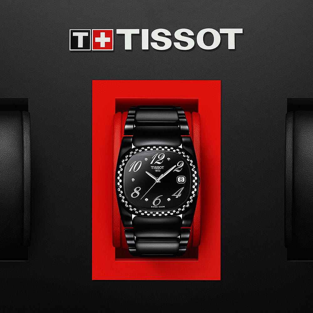 Женские швейцарские часы Tissot T-Trend T009.310.11.057.02 с бриллиантами. Корпус с сапфировым стекломСапфировое стеклоПрочный и надёжный материал из кристалла сапфира синтетического происхождения, характеризующийся особой твёрдостью и устойчивостью к царапинам и повреждениям., устойчивым к появлению царапин и обладающее высокой прозрачностью. Индикация даты. EOL – это специальная система, уведомляющая владельца кварцевых часов о том, что необходимо заменить элемент питания. В оснащенных данной системой часах примерно за 2 недели до полного истощения энергии батарейки секундная стрелка начинает вести себя особым образом: перестает ходить четко посекундно, а ждет 4 секунды и перепрыгивает вперед сразу на 4 (иногда 2) деления. Тем самым, часы дают понять, что в них пора менять батарейку. Нержавеющая сталь с PVDPVDУльтратонкое покрытие наносится в технике вакуумного напыления, сочетает в себе нитрид титана особой прочности со слоем золота или оксида хрома. Несёт в себе декоративную или защитную функцию. покрытием.