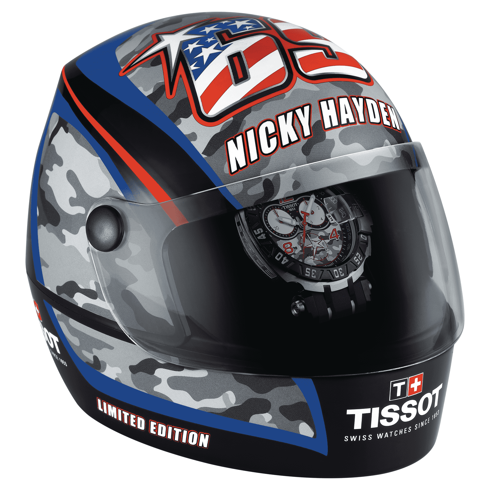 Мужские швейцарские часы из лимитированной коллекции (4999 экземпляров) Tissot T-Race Nicky Hayden (американский мотогонщик. Чемпион мира по шоссейно-кольцевым мотогонкам в классе MotoGP 2006 года) T092.417.27.057.03, кварцевый механизм с высокой точностью. Сапфировое стекло устойчивое к появлению царапин, обладающее высокой прозрачностью. Класс водозащиты: 100 метров, позволит плавать, нырять и заниматься другими водными видами спорта. Корпус часов изготовлен из стали, цвета.