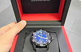 Аксессуар характеризуется как дайверские часы, водонепроницаемость сохраняется при давлении до 30 бар на глубине 300 метров. Модель имеет чёрно-синие исполнение, последний оттенок был реализован благодаря PVD-покрытиюPVDУльтратонкое покрытие наносится в технике вакуумного напыления, сочетает в себе нитрид титана особой прочности со слоем золота или оксида хрома. Несёт в себе декоративную или защитную функцию.. Внутри герметичного корпуса с завинчивающейся заводной головкой находится популярный швейцарский калибр Powermatic 80Powermatic 80Эксклюзивный калибр от швейцарской компании ETA с увеличенным запасом хода до 80 часов за счёт удлинённой заводной пружины. Характеризуется улучшенной системой спуска со сниженным трением. с запасом хода до 80 часов. Прозрачная задняя крышка. Вращающийся безельБезельВнешний ободок, закрепляющий стекло. В спортивных часах так называется поворотное кольцо с делениями на циферблате, выполняет роль таймера – замеряет отрезки времени на шкале. Неподвижный безель – элемент декора. Однонаправленно вращающийся безель на дайверских часах позволяет фиксировать моменты погружения и выныривания на поверхность. с минутной шкалой. Люминесцентная подсветкаЛюминесцентное покрытиеПозволяет считывать показания времени в темноте. Производители наносят на стрелки, часовые индексы, безель или поверхность циферблата светонакопительный состав, дающий холодное свечение.. Окошко даты. Габариты: 40 x 40 x 12,5 мм.