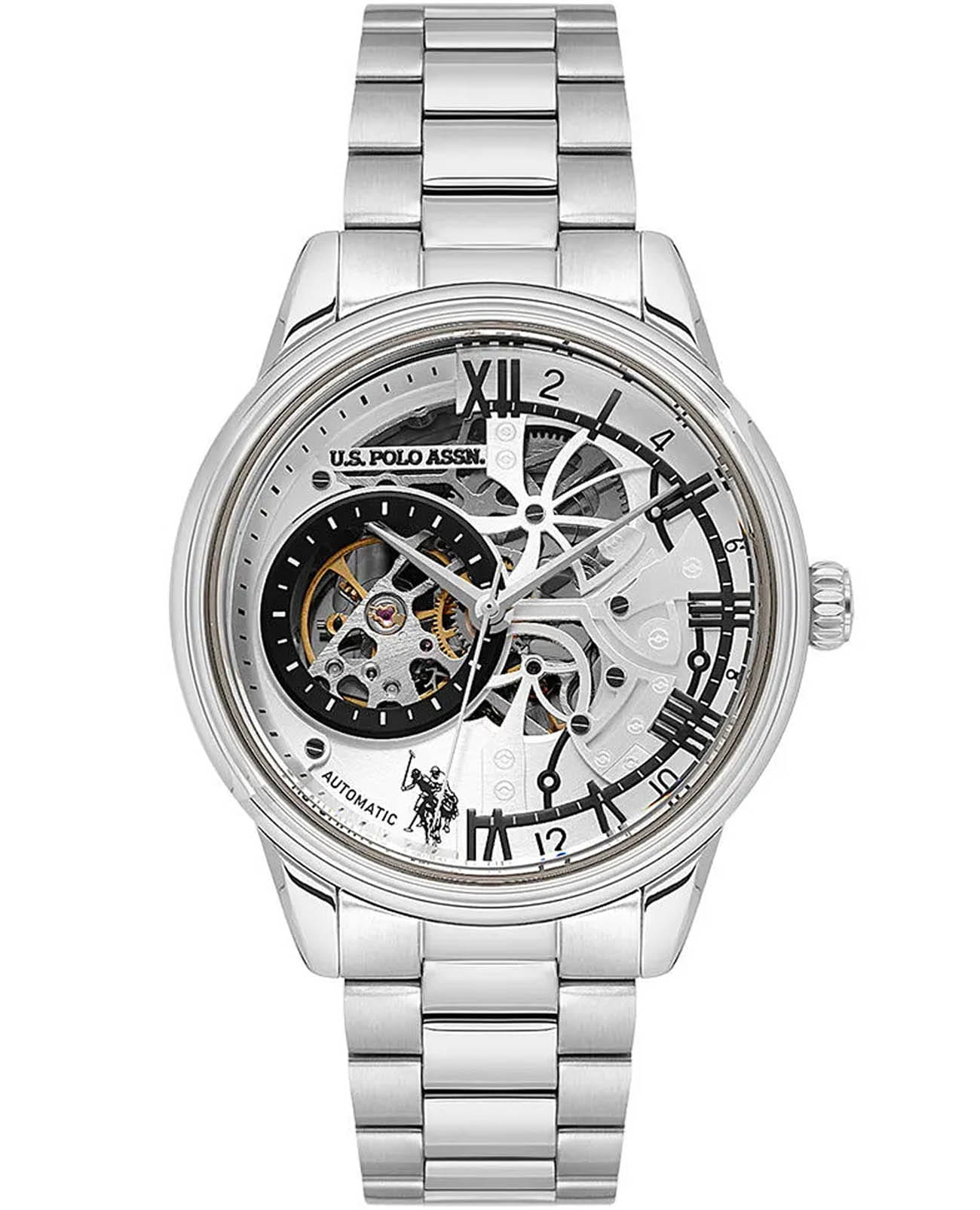 Мужские элегантные американские часы U.S. Polo Assn. Crossing USPA1112-01 со скелетонизированным циферблатом обладают механическим механизмом с автоподзаводом. Минеральное стеклоМинеральное стеклоМинеральное стекло представляет собой искусственно выращенный минерал кварца. Такое стекло отличается особой устойчивостью к повреждениям и царапинам. Уступает по некоторым качествам сапфировому стеклу. устойчивое к появлению царапин, обладающее высокой прозрачностью. Изысканный корпус изготовлен из нержавеющей стали. Стильные лаконичные центральные часовая, минутная и секундная стрелки. Класс водозащиты: 50 метров, позволит защитить корпус от случайных брызг или капель дождя. Браслет из стали фиксируется на раскладной застёжкеРаскладная застёжкаТакой тип застёжки используется только на браслетах из металла. Она никогда не раскрывается полностью, происходит разделение на 2 и более частей. Раскладывающая застёжка снизит вероятность потери часов к минимуму., обеспечивая комфорт и удобство в использовании, а также добавляя завершающий штрих к этому стильному аксессуару. Это практичный и стильный инструмент для активной повседневности, объединяющий точный механизм и удобство.