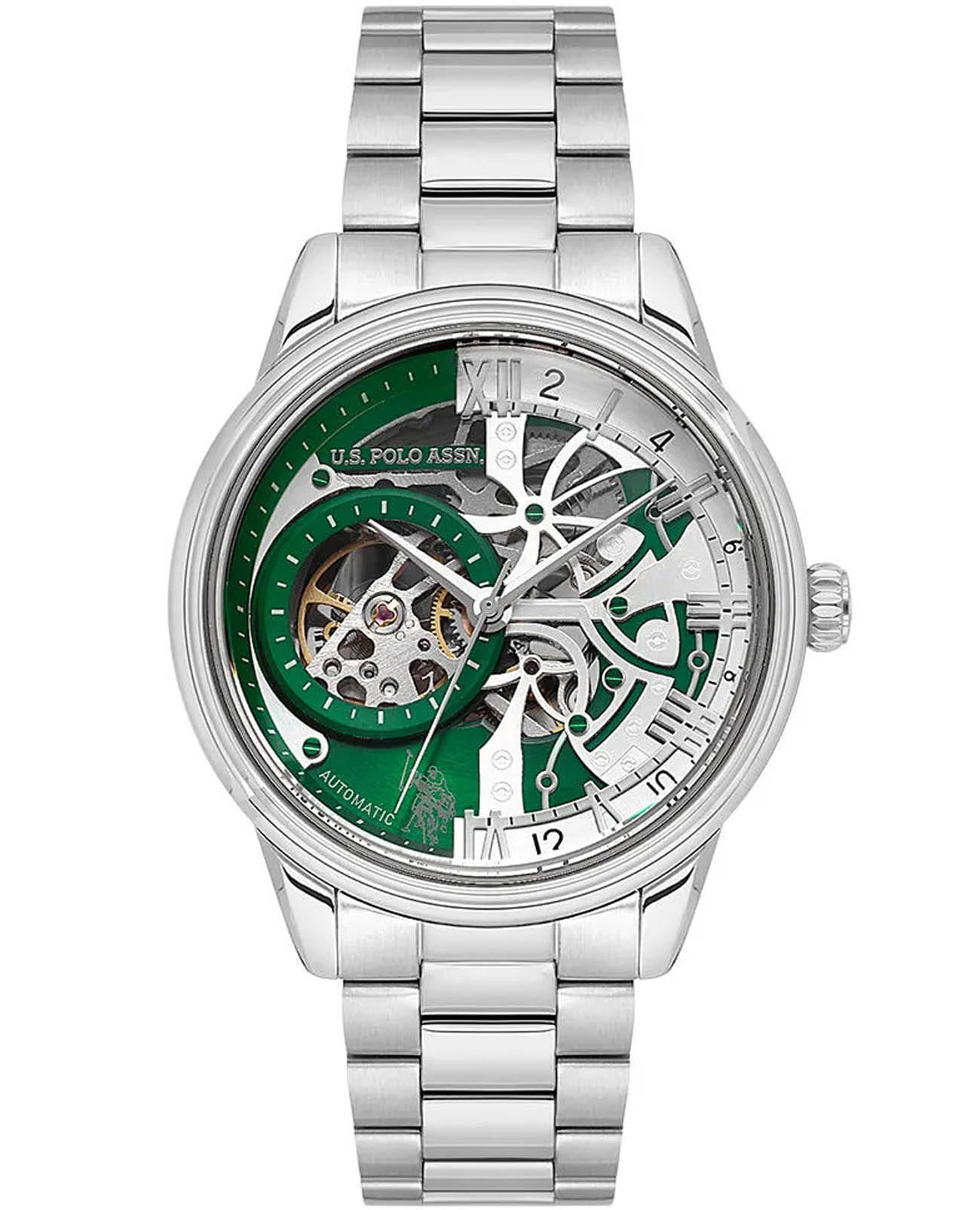 Мужские элегантные американские часы U.S. Polo Assn. Crossing USPA1112-03 со скелетонизированным циферблатом обладают механическим механизмом с автоподзаводом. Минеральное стеклоМинеральное стеклоМинеральное стекло представляет собой искусственно выращенный минерал кварца. Такое стекло отличается особой устойчивостью к повреждениям и царапинам. Уступает по некоторым качествам сапфировому стеклу. устойчивое к появлению царапин, обладающее высокой прозрачностью. Изысканный корпус изготовлен из нержавеющей стали. Стильные лаконичные центральные часовая, минутная и секундная стрелки. Класс водозащиты: 50 метров, позволит защитить корпус от случайных брызг или капель дождя. Браслет из стали фиксируется на раскладной застёжкеРаскладная застёжкаТакой тип застёжки используется только на браслетах из металла. Она никогда не раскрывается полностью, происходит разделение на 2 и более частей. Раскладывающая застёжка снизит вероятность потери часов к минимуму., обеспечивая комфорт и удобство в использовании, а также добавляя завершающий штрих к этому стильному аксессуару. Это практичный и стильный инструмент для активной повседневности, объединяющий точный механизм и удобство.