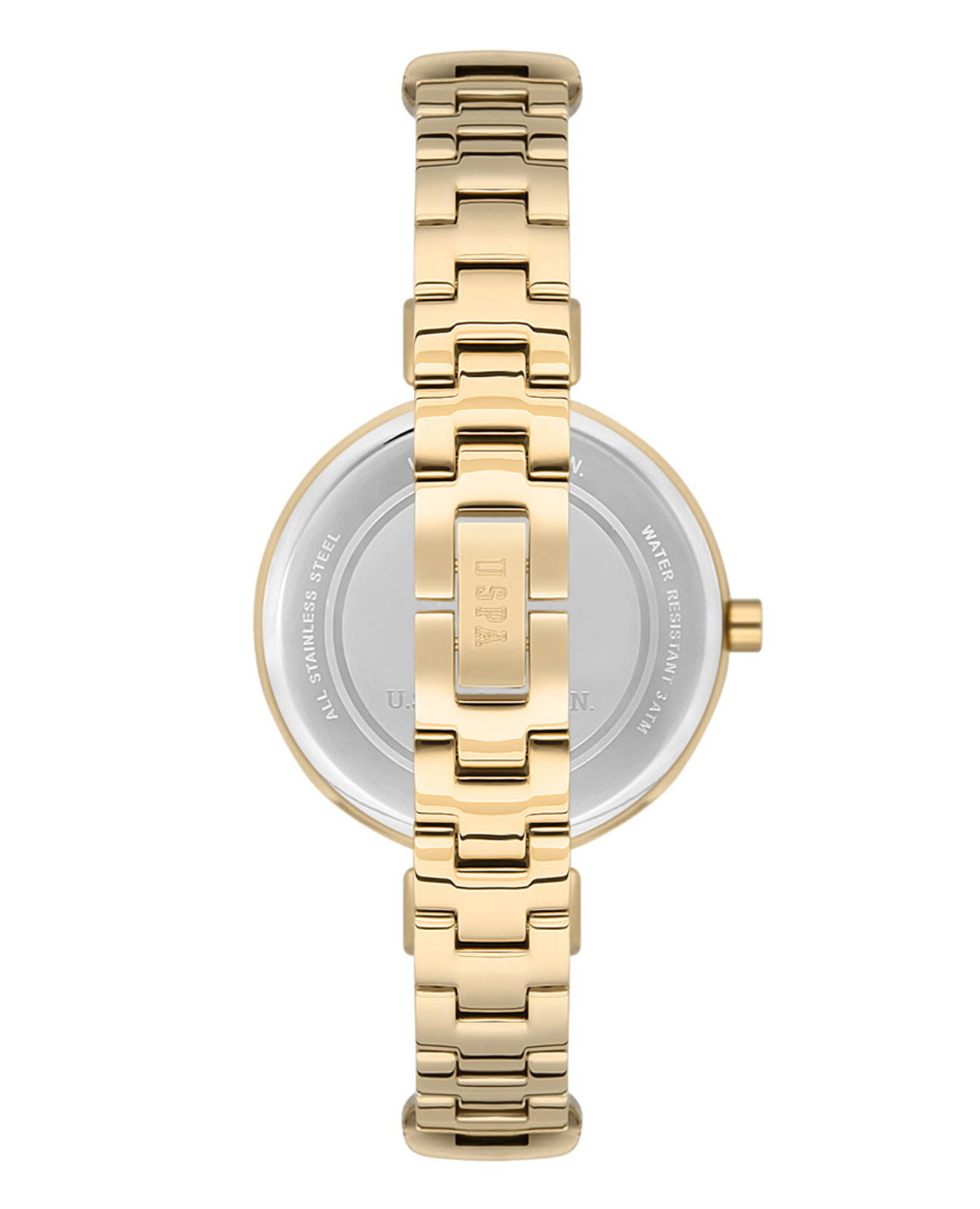 Женские часы U.S. Polo Assn Stile USPA2029-01, кварцевый механизм с высокой точностью. Минеральное стеклоМинеральное стеклоМинеральное стекло представляет собой искусственно выращенный минерал кварца. Такое стекло отличается особой устойчивостью к повреждениям и царапинам. Уступает по некоторым качествам сапфировому стеклу. устойчивое к появлению царапин, обладающее высокой прозрачностью. Корпус изготовлен из нержавеющей стали с IP-покрытиемIP-покрытиеМетод ионного напыления. Демонстрирует повышенную устойчивость к истиранию, окислению и химическим веществам. Под воздействием высокого давления и температуры около 1500°C молекулы металла надёжно соединяются с частицами корпуса часов.. Циферблат украшен кристаллами. Класс водозащиты: 50 метров, позволит защитить корпус от случайных брызг или капель дождя. Стальной браслет с частичным IP-покрытиемIP-покрытиеМетод ионного напыления. Демонстрирует повышенную устойчивость к истиранию, окислению и химическим веществам. Под воздействием высокого давления и температуры около 1500°C молекулы металла надёжно соединяются с частицами корпуса часов. на ювелирной застёжке.