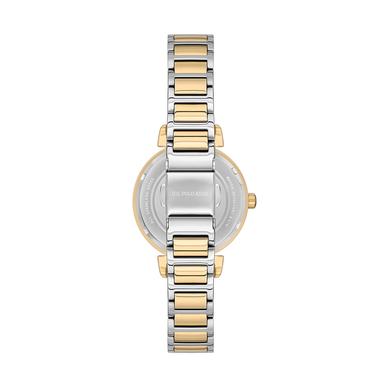 Женские часы U.S. Polo Assn. USPA2070-05 кварцевый механизм с высокой точностью. Минеральное стеклоМинеральное стеклоМинеральное стекло представляет собой искусственно выращенный минерал кварца. Такое стекло отличается особой устойчивостью к повреждениям и царапинам. Уступает по некоторым качествам сапфировому стеклу. устойчивое к появлению царапин, обладающее высокой прозрачностью. Корпус изготовлен из нержавеющей стали. Класс водозащиты: 50 метров, позволит защитить корпус от случайных брызг или капель дождя. Стальной браслет на раскладной застёжкеРаскладная застёжкаТакой тип застёжки используется только на браслетах из металла. Она никогда не раскрывается полностью, происходит разделение на 2 и более частей. Раскладывающая застёжка снизит вероятность потери часов к минимуму. IP-покрытиемIP-покрытиеМетод ионного напыления. Демонстрирует повышенную устойчивость к истиранию, окислению и химическим веществам. Под воздействием высокого давления и температуры около 1500°C молекулы металла надёжно соединяются с частицами корпуса часов.. Неподвижный безельБезельВнешний ободок, закрепляющий стекло. В спортивных часах так называется поворотное кольцо с делениями на циферблате, выполняет роль таймера – замеряет отрезки времени на шкале. Неподвижный безель – элемент декора. Однонаправленно вращающийся безель на дайверских часах позволяет фиксировать моменты погружения и выныривания на поверхность. с IP-покрытиемIP-покрытиеМетод ионного напыления. Демонстрирует повышенную устойчивость к истиранию, окислению и химическим веществам. Под воздействием высокого давления и температуры около 1500°C молекулы металла надёжно соединяются с частицами корпуса часов..
