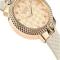 Притягательный дизайн этих модный часов эффектно подчеркивает неповторимый вкус их счастливой обладательницы. Эффектные дизайнерские часы Mouffetard с круглым корпусом. Безель декорирован узором ''Clous de Paris''. Текстурированный циферблат в виде плетеной кожи, украшенный кристаллами Сваровски. Крепление ремешка украшено вставками с объемным лого в форме головы льва. Кожаный плетеный ремешок с классической застежкой.