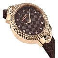 Притягательный дизайн этих модный часов эффектно подчеркивает неповторимый вкус их счастливой обладательницы. Эффектные дизайнерские часы Mouffetard с круглым корпусом. Безель декорирован узором ''Clous de Paris''. Текстурированный циферблат в виде плетеной кожи, украшенный кристаллами Сваровски. Крепление ремешка украшено вставками с объемным лого в форме головы льва. Кожаный плетеный ремешок с классической застежкой.