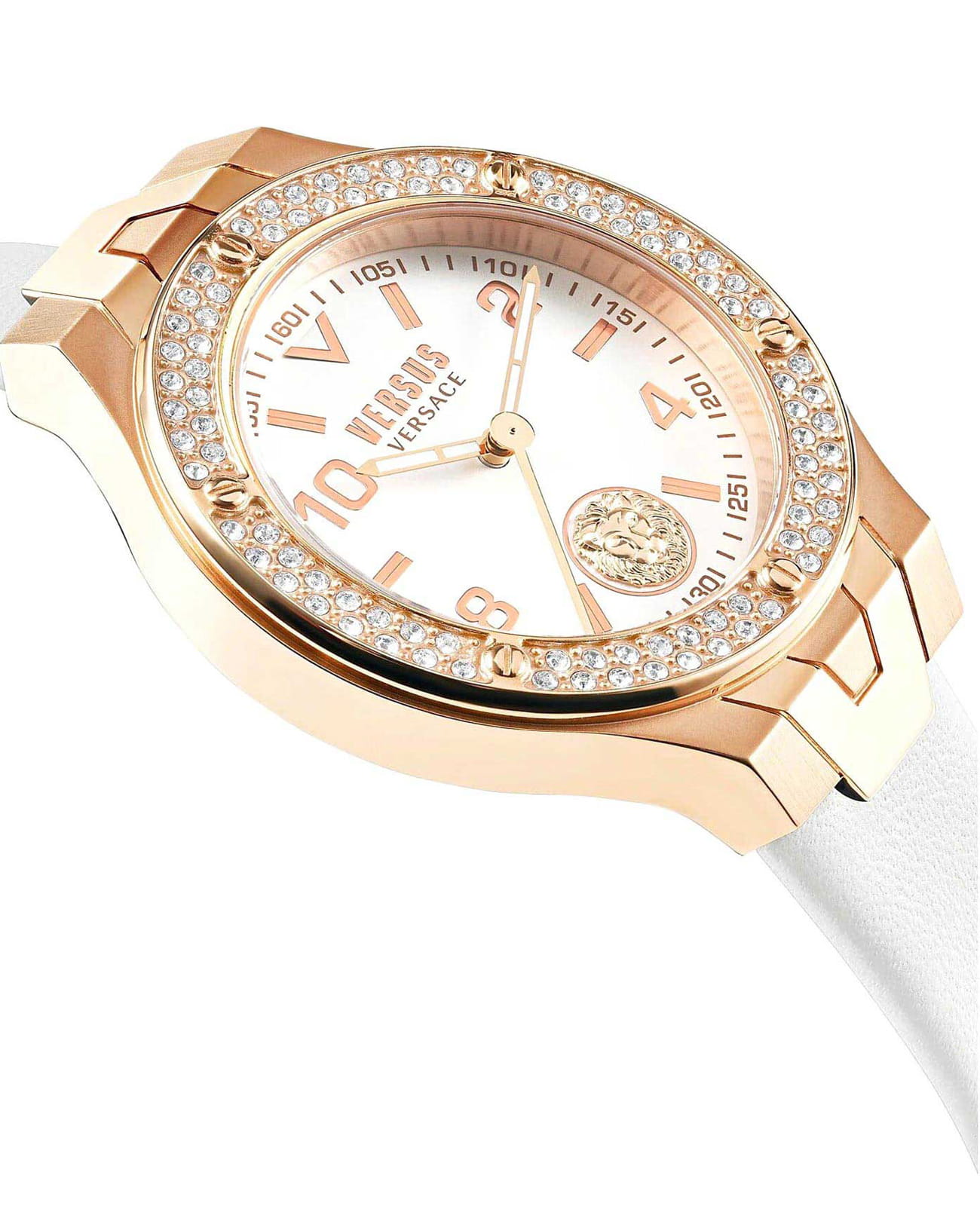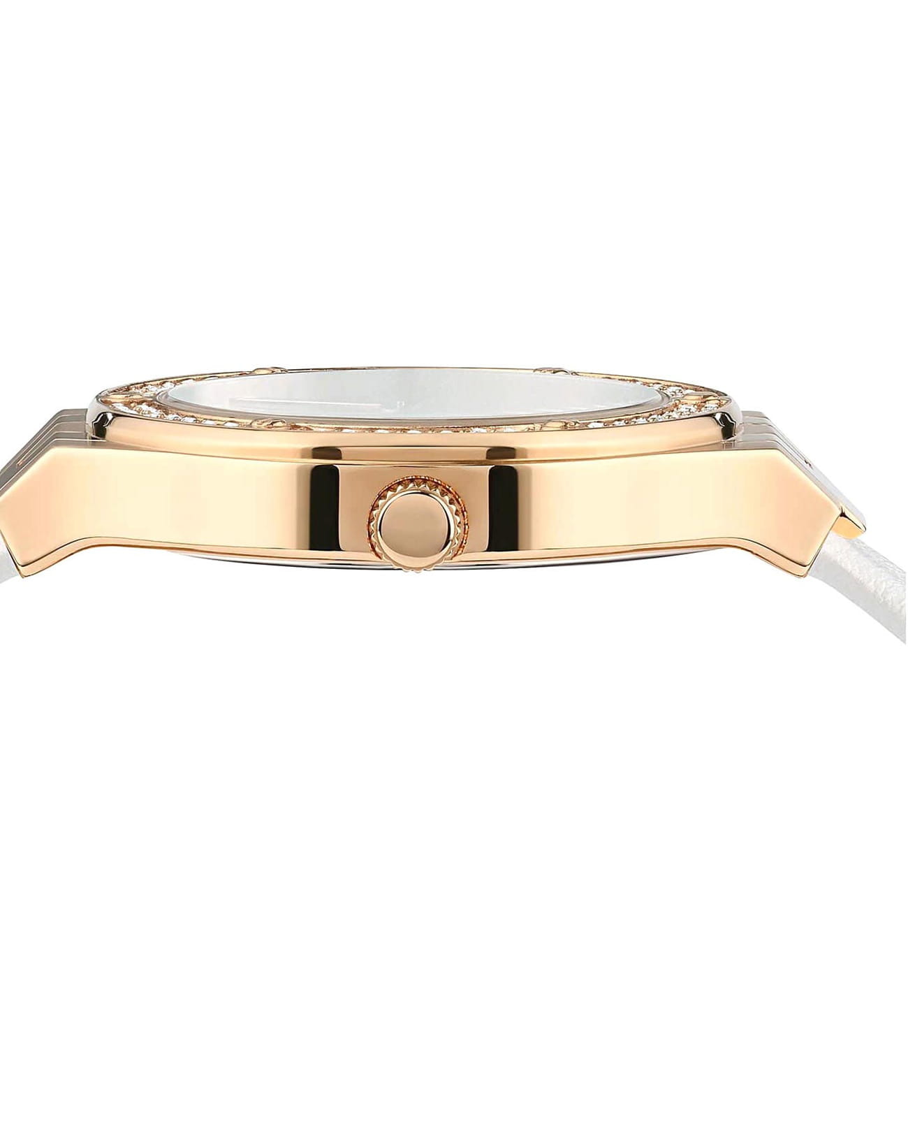 Бесподобные женственные часы окутают вас ювелирной роскошью, доведя образ до совершенства. Стильные часы Vittoria с круглым стальным корпусом дополненным планками V-образной формы. Безель инкрустирован кристаллами Сваровски. Циферблат украшен 3d лого в форме головы льва. Часовые метки в виде арабских цифр и штрихов. Кожаный ремешок с классической застежкой.