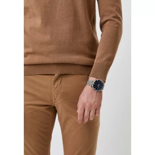Модель Wainer WA.19540-C сочетает элегантность, функциональность и швейцарскую точность. Корпус диаметром 44 мм выполнен из нержавеющей стали 316L, обеспечивающей прочность и долговечность. БезельБезельВнешний ободок, закрепляющий стекло. В спортивных часах так называется поворотное кольцо с делениями на циферблате, выполняет роль таймера – замеряет отрезки времени на шкале. Неподвижный безель – элемент декора. Однонаправленно вращающийся безель на дайверских часах позволяет фиксировать моменты погружения и выныривания на поверхность. с PVD-покрытиемPVDУльтратонкое покрытие наносится в технике вакуумного напыления, сочетает в себе нитрид титана особой прочности со слоем золота или оксида хрома. Несёт в себе декоративную или защитную функцию.. Циферблат оформлен в современном стиле и оснащен хронографомХронографФункция позволяет измерять отрезки времени с особой точностью: часы, минуты, секунды. Верным признаком хронографа является наличие на циферблате 3 дополнительных окошек-счётчиков. для точного измерения времени, а сапфировое стеклоСапфировое стеклоПрочный и надёжный материал из кристалла сапфира синтетического происхождения, характеризующийся особой твёрдостью и устойчивостью к царапинам и повреждениям. защищает дисплей от царапин и механических повреждений. Часы работают на надежном кварцевом механизме Ronda RL-5030.D, обеспечивающем стабильную точность. Браслет из нержавеющей стали гарантирует удобную посадку на запястье. Водонепроницаемость до 100 метров делает модель подходящей для плавания и активного образа жизни. Wainer WA.19540-C — это стильный аксессуар для мужчин, ценящих швейцарское качество, современные технологии и утонченный дизайн.