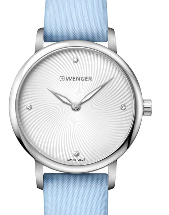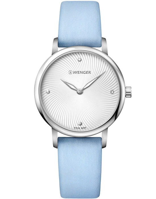 Женские швейцарские часы со стразами Wenger 01.1721.108, кварцевый механизм с высокой точностью. Класс водозащиты: 100 метров, позволит плавать, нырять и заниматься другими водными видами спорта. Корпус часов изготовлен из стали, серебристого цвета.